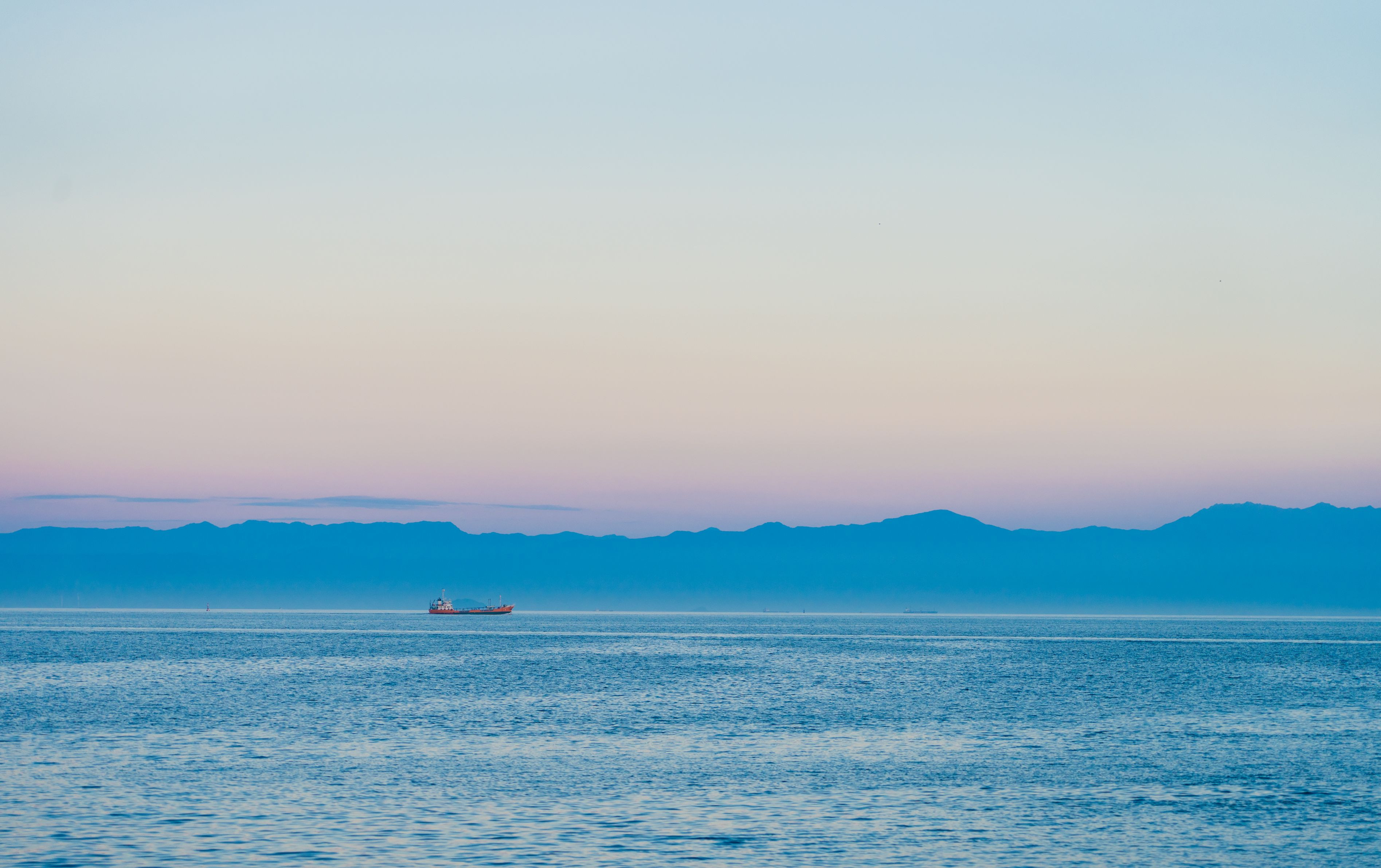 広島の鞆の浦から瀬戸内海の穏やかな海を切り撮りました。穏やかな海と空の色彩が気に入っている作品の一つです。