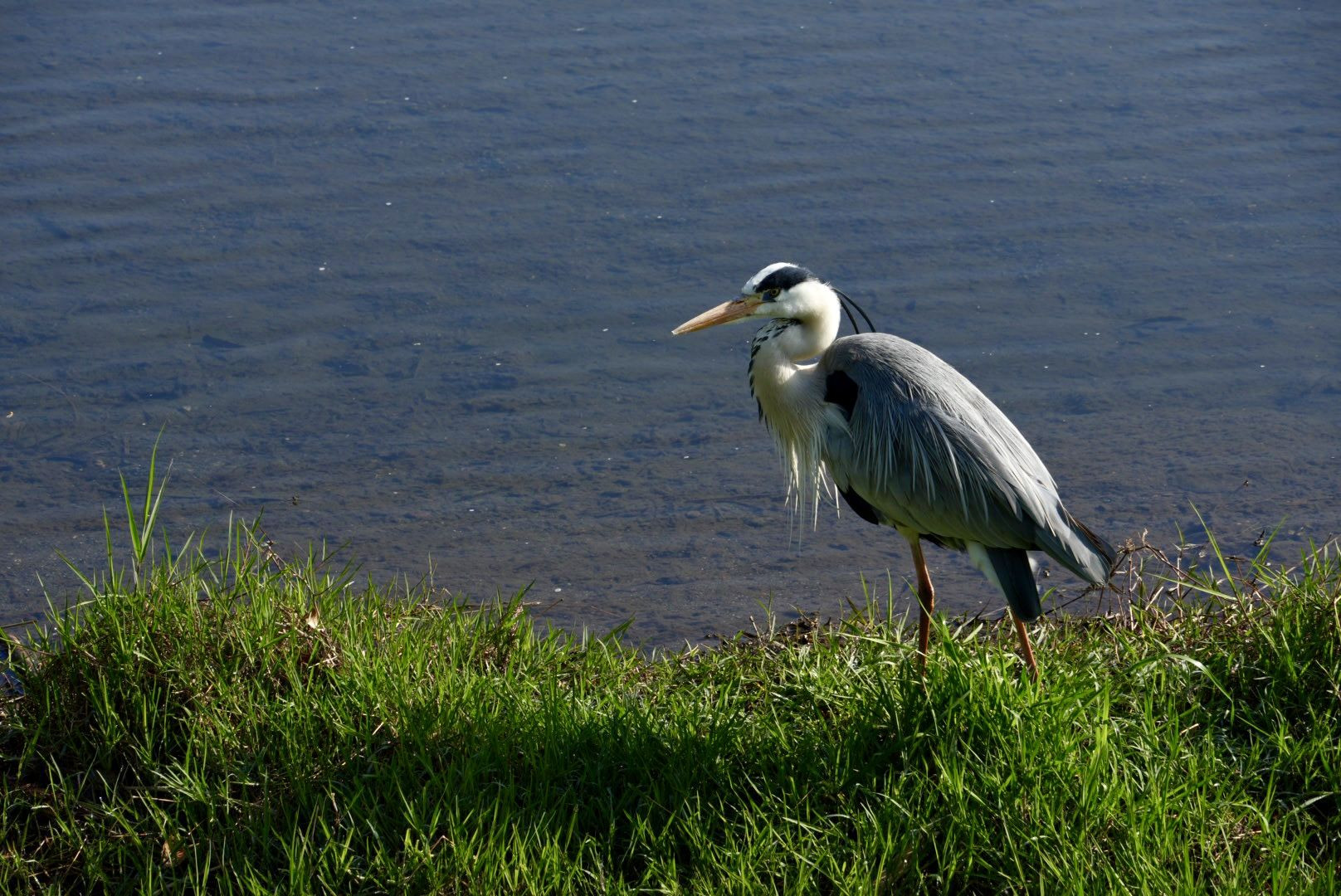 カモたちが去り寂しくなった賀茂川でアオサギが優雅に毛づくろいしていました。