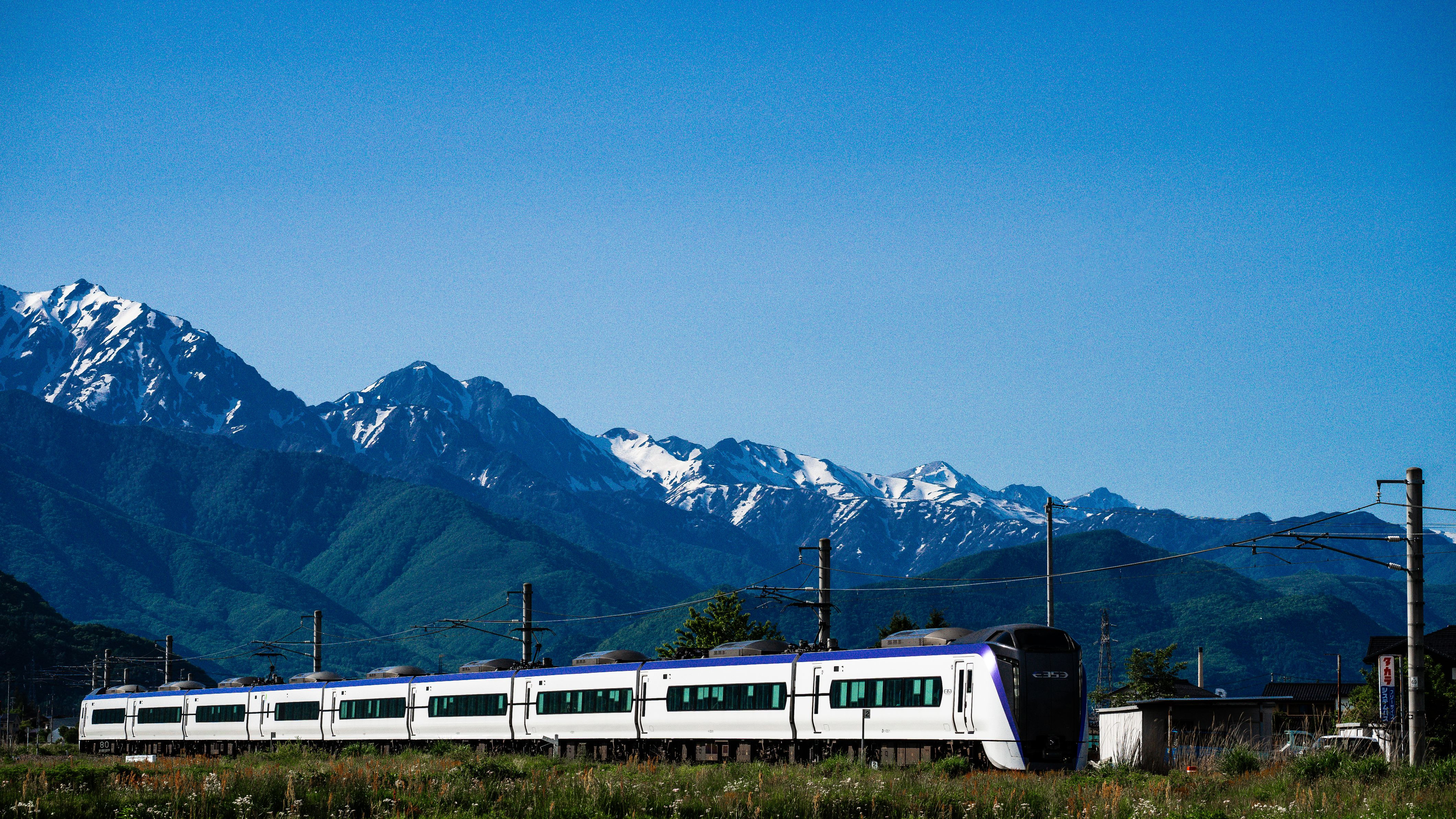 雄大な北アルプスをバックに特急あずさ号が駆け抜けていきました(*^^)v