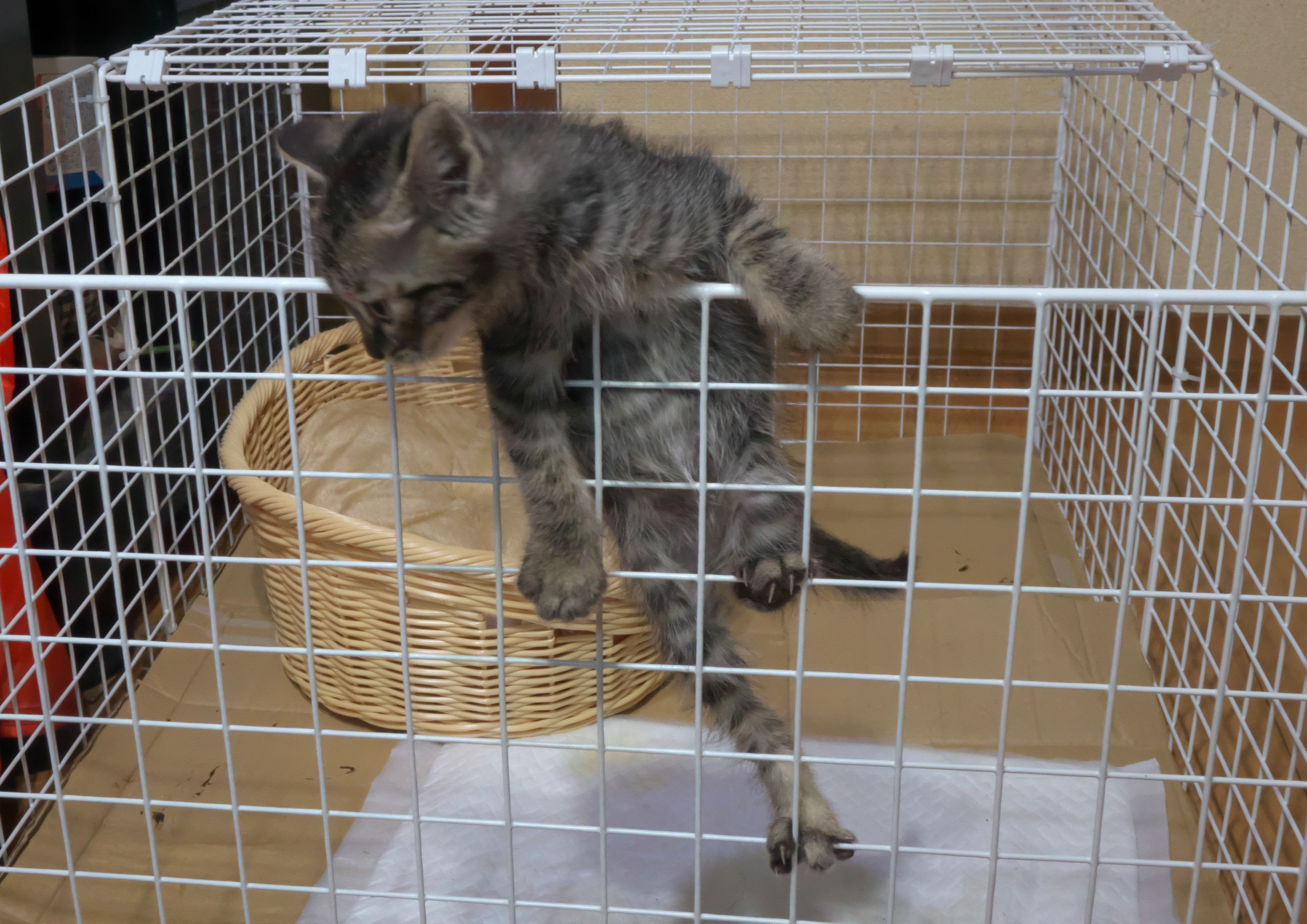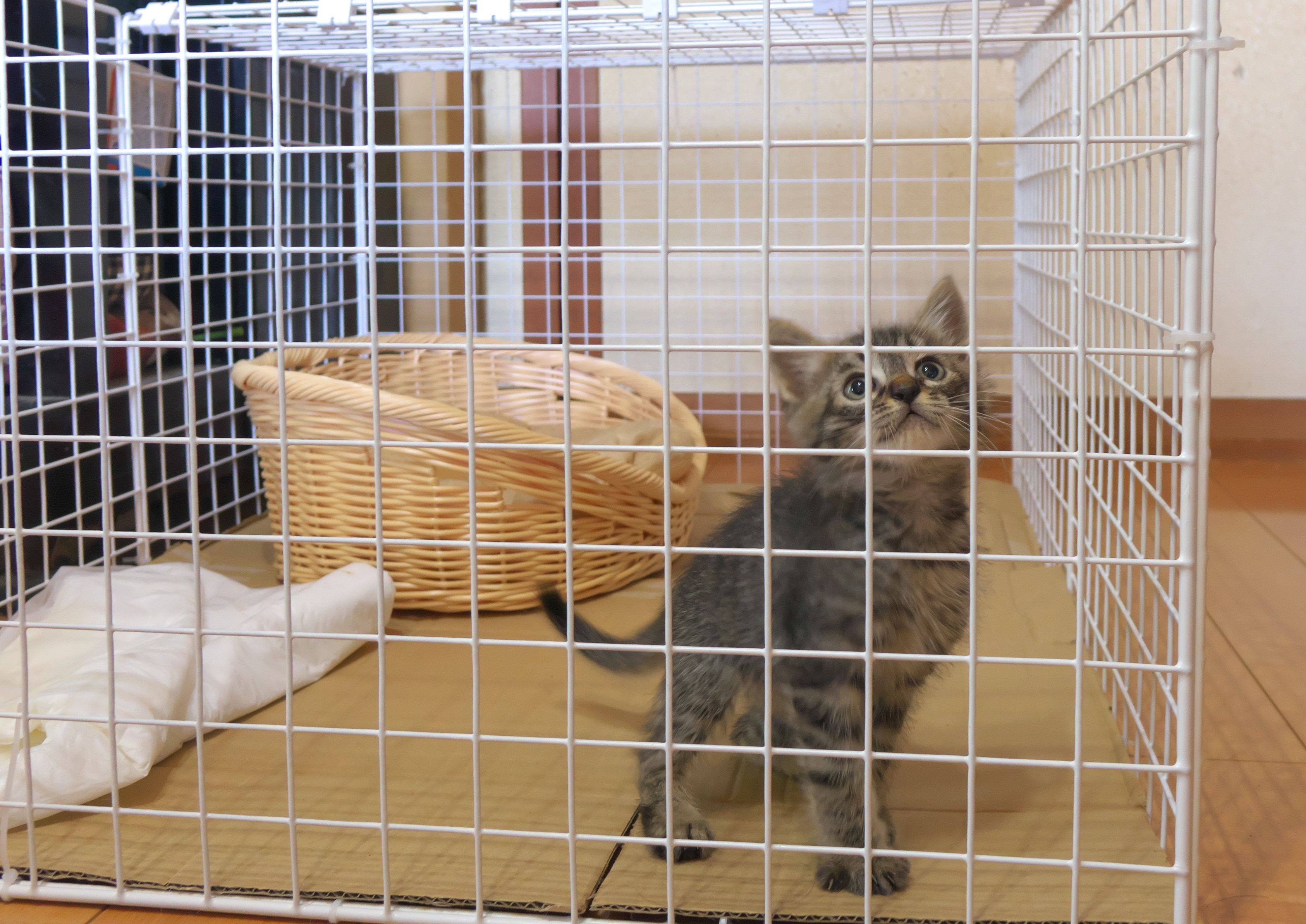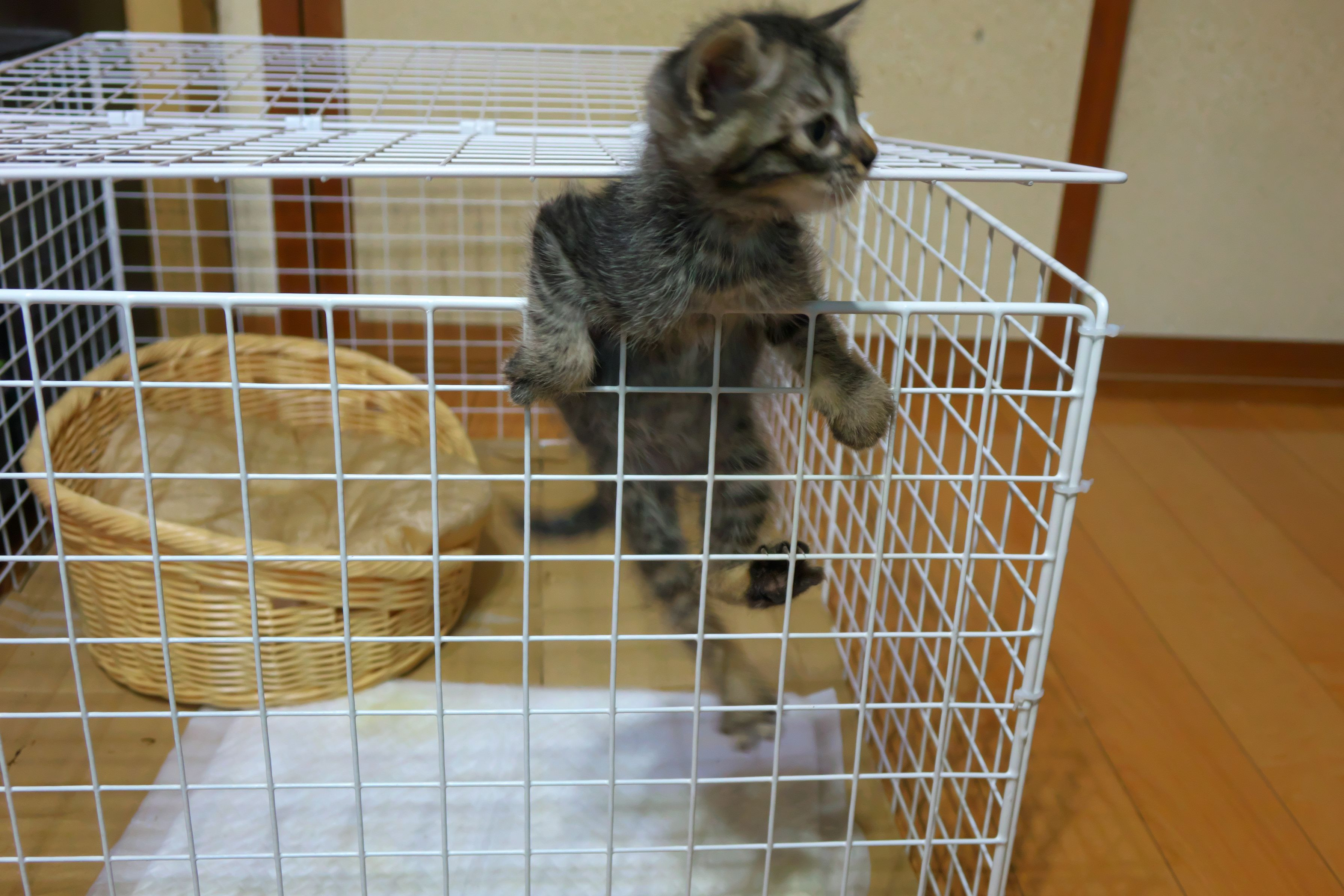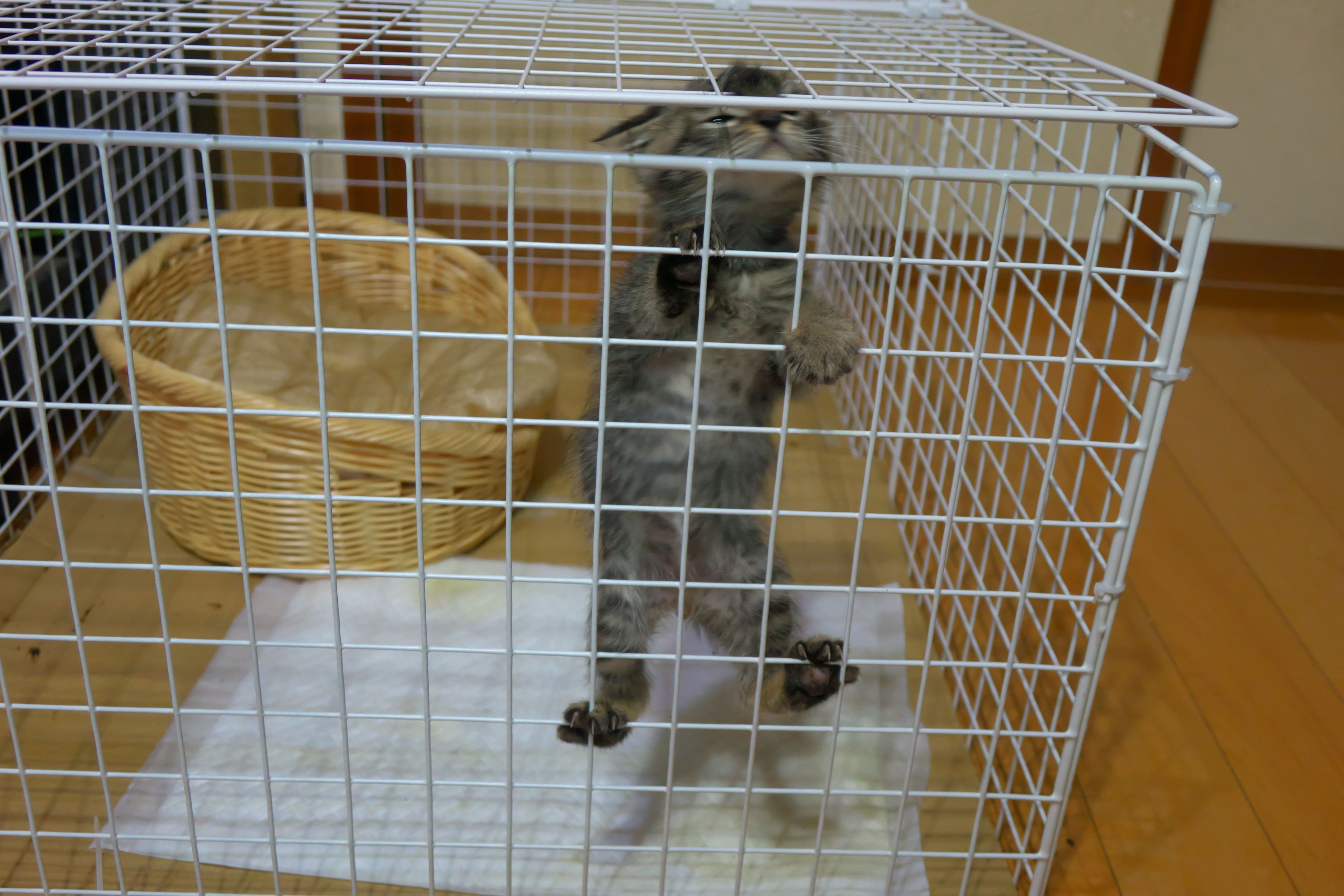 カミさんを追いかけまわして、足元でチョロチョロ・・ 危なくて、台所仕事ができない(~_~;) 仕方が無いのでゲージを買おうと言い出したが・・高い では、作ればいい。 100均で材料を購入、組み立ててみたら上手くできた これで安心・・と思ったが・・・