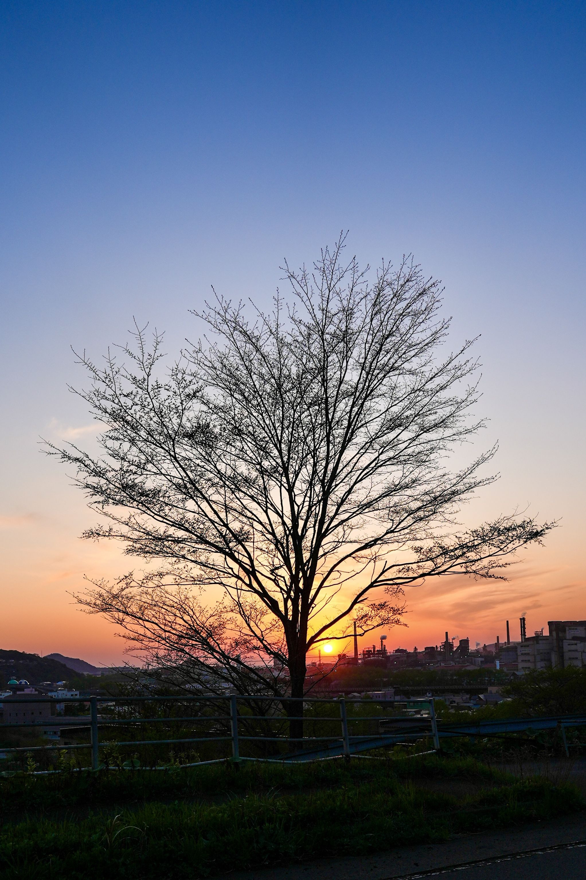 夕陽を狙って訪れた場所で綺麗なシルエットの街路樹、いい雰囲気を出せました。