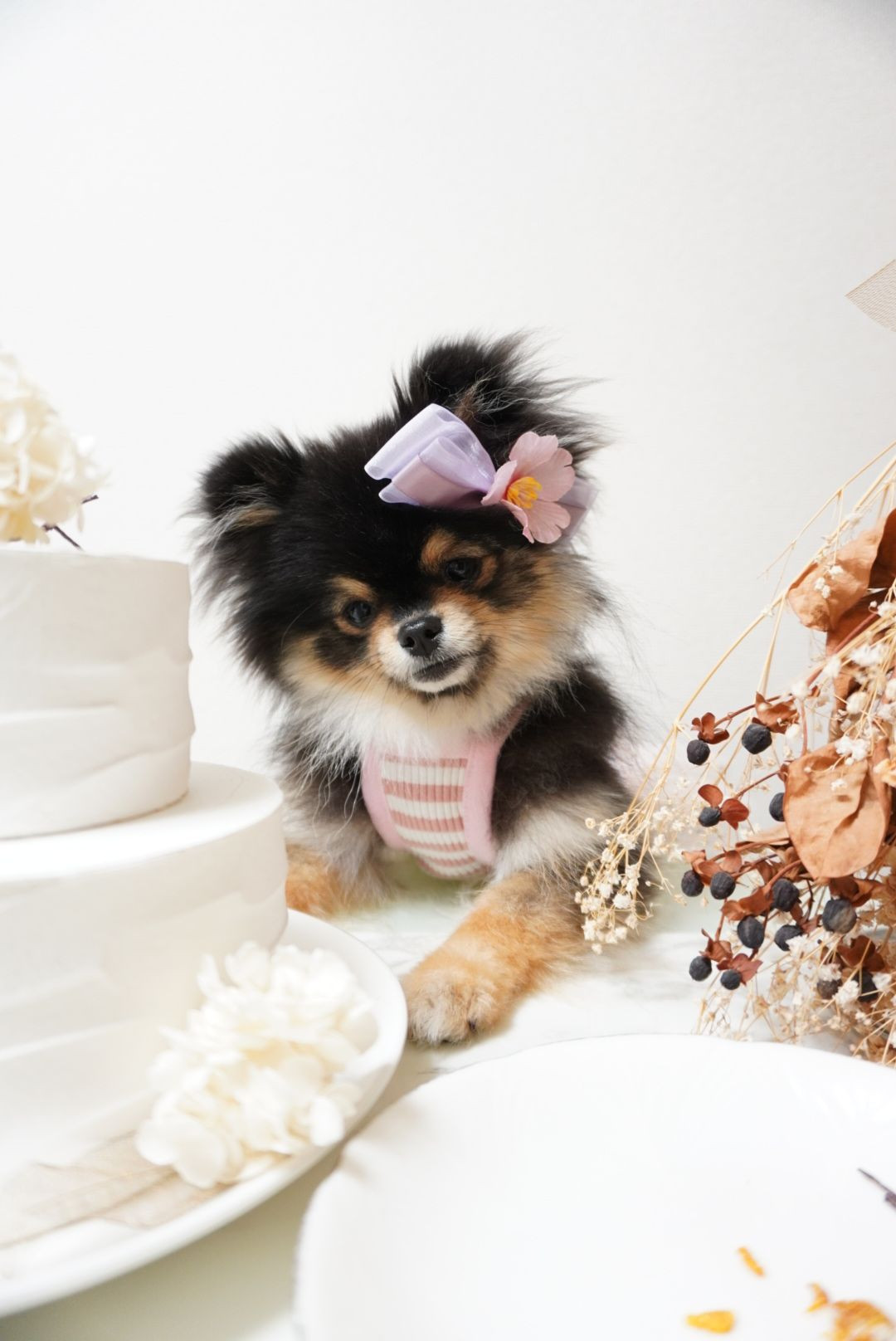 #ペット自慢2024_犬# おうちカフェ撮影🤍🎀 可愛いセットでラブリーラム🐻