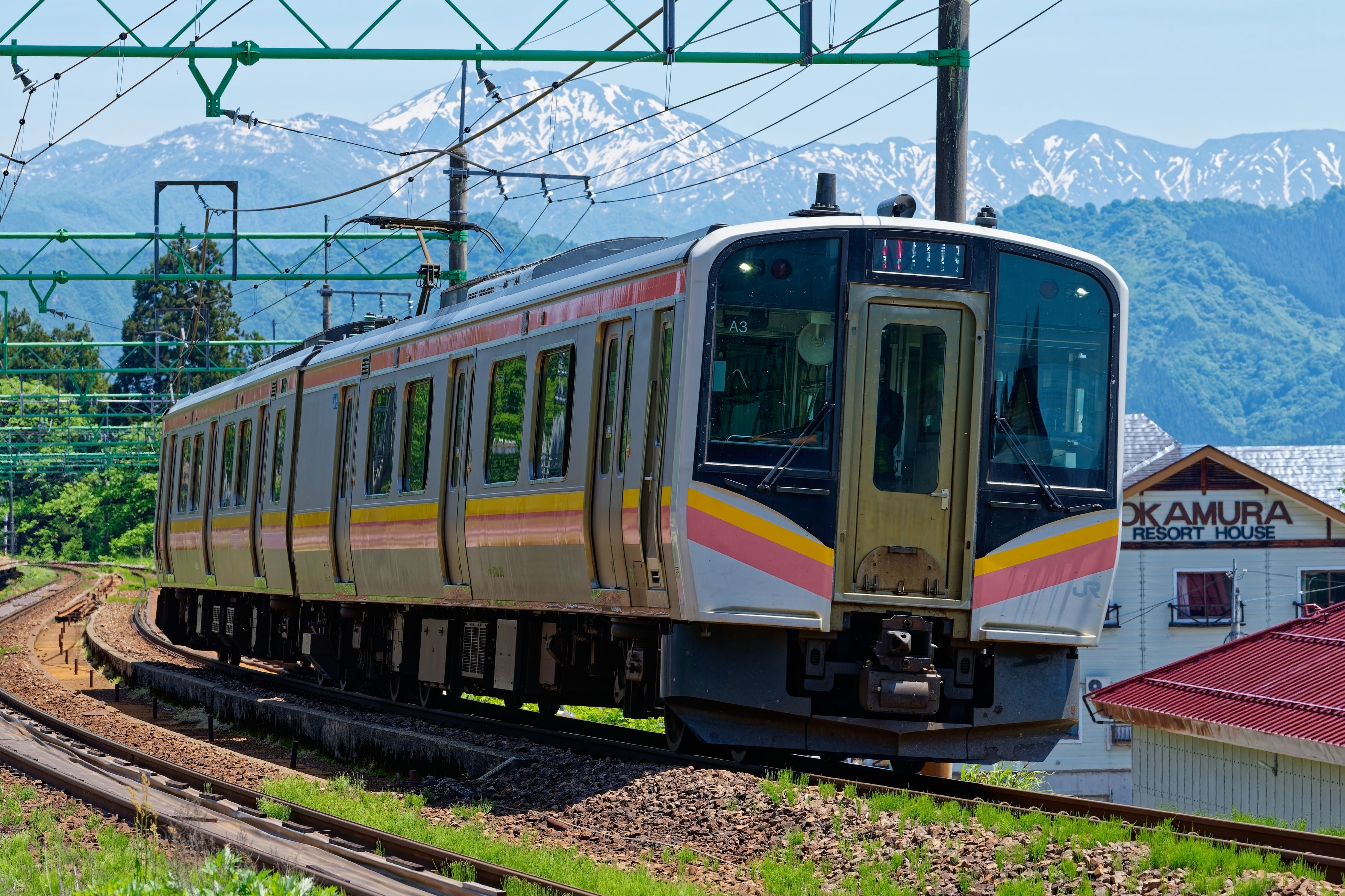 上越線で走る普通列車と雪山のツーショットです。