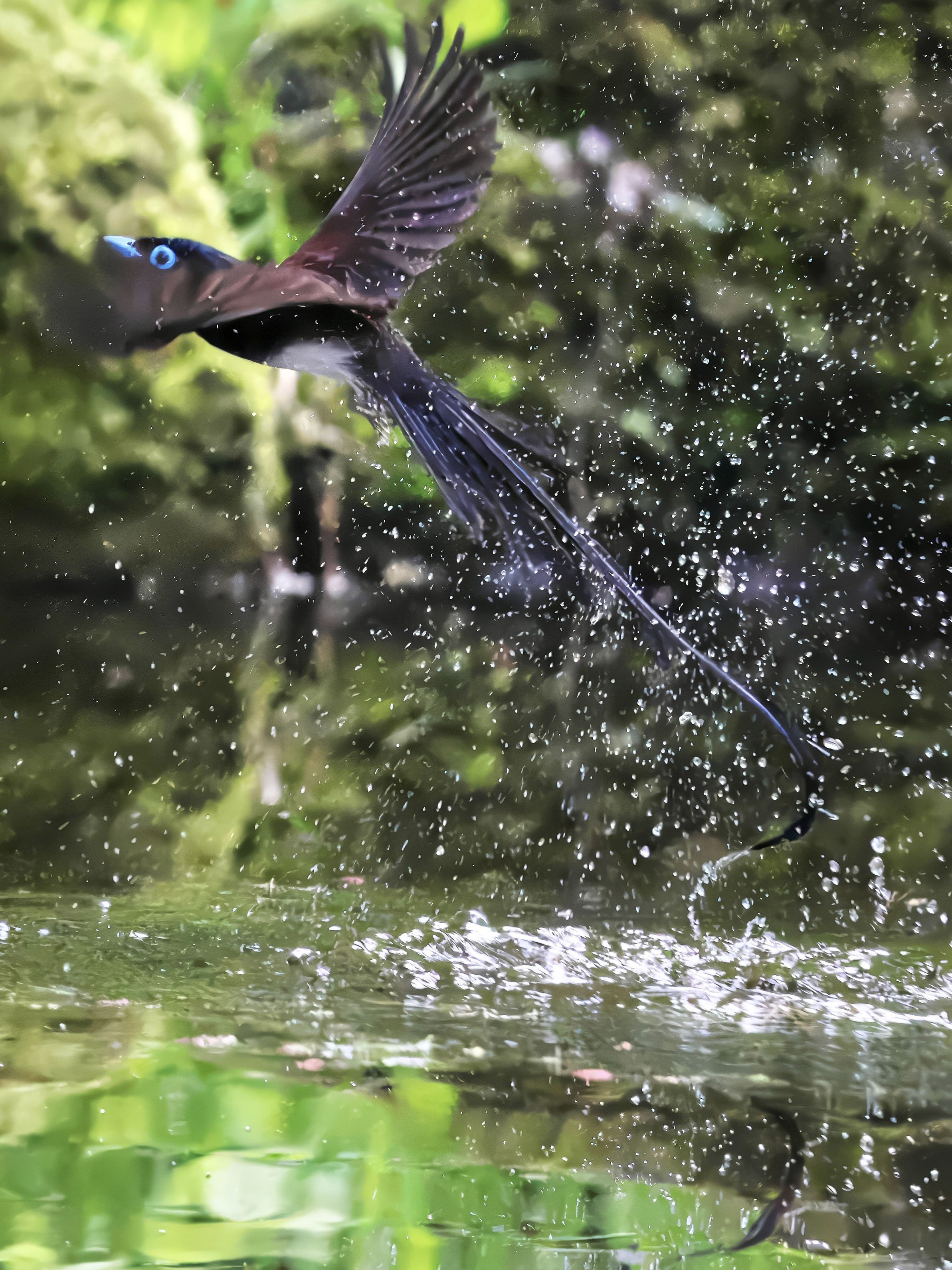 サンコウチョウの水浴び