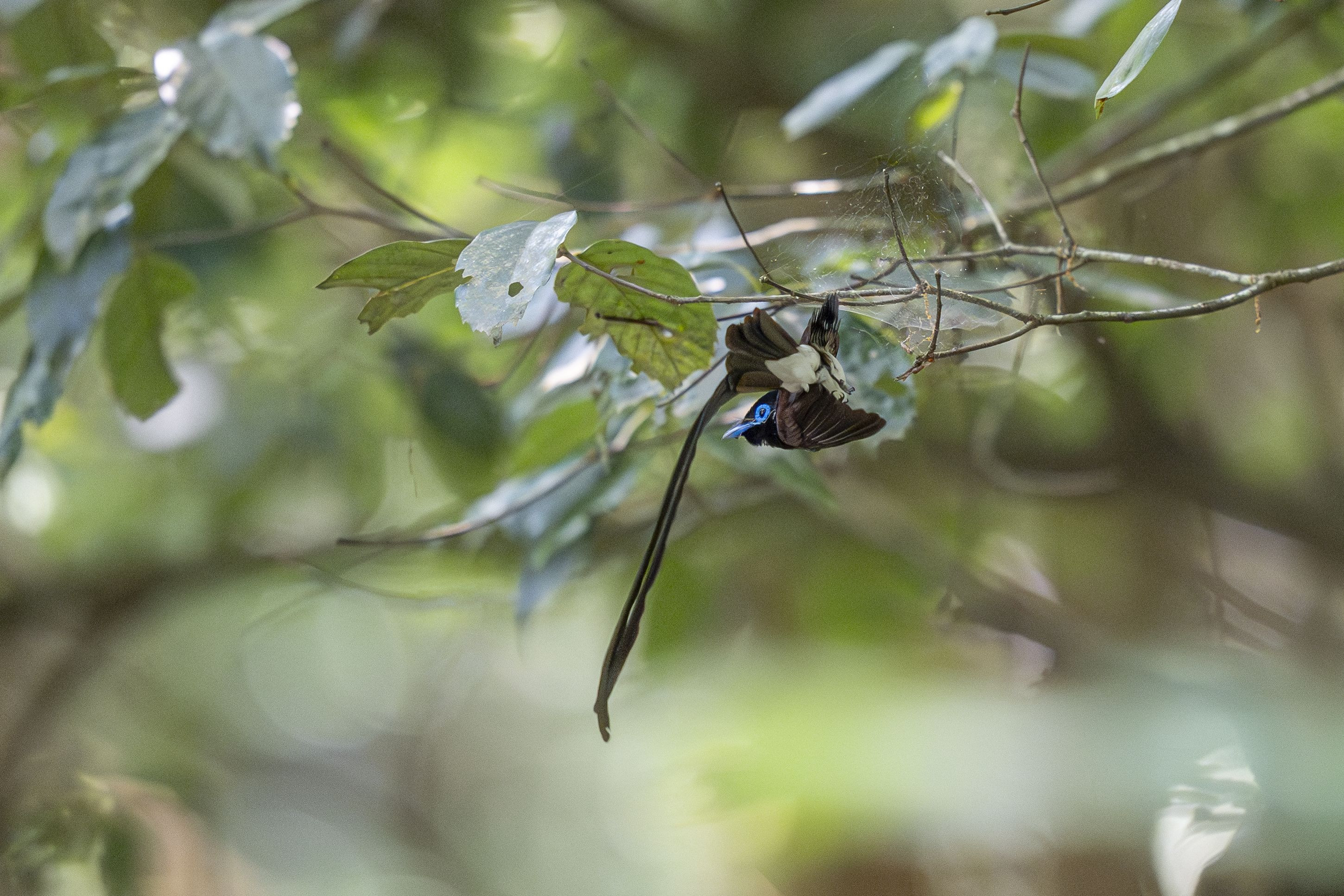 3年ぶりに出逢えたサンコウチョウ。 巣材の蜘蛛の巣集め中に見せてくれた、 アクロバティックな一瞬。 #サンコウチョウ# #CHOICEチャレンジ2024#