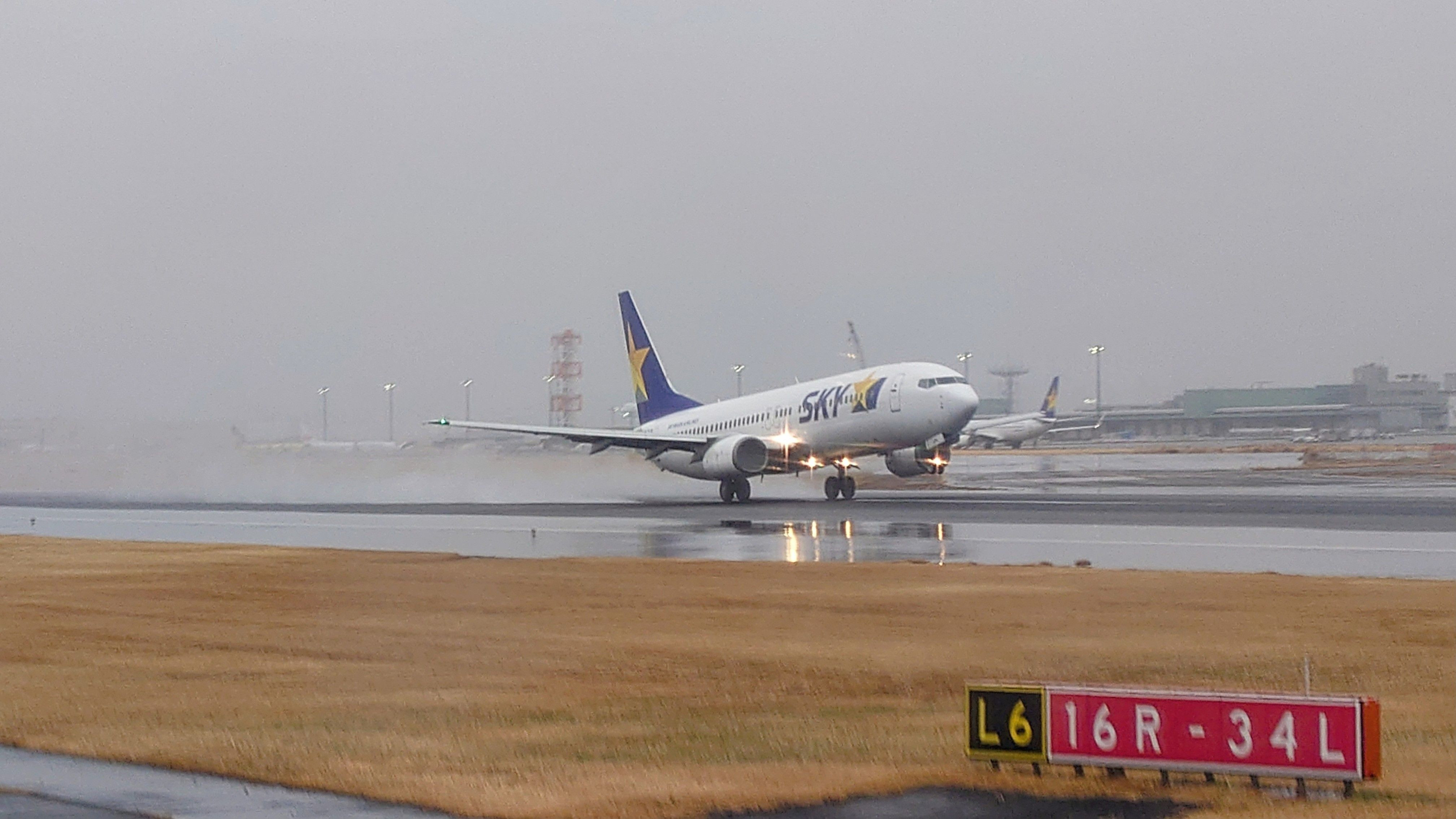駐車場の空きを待つ間に、滑走路の横で機内から撮影しました!