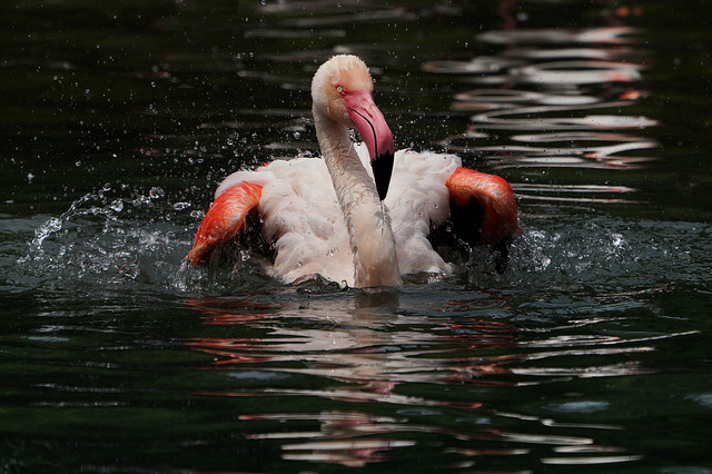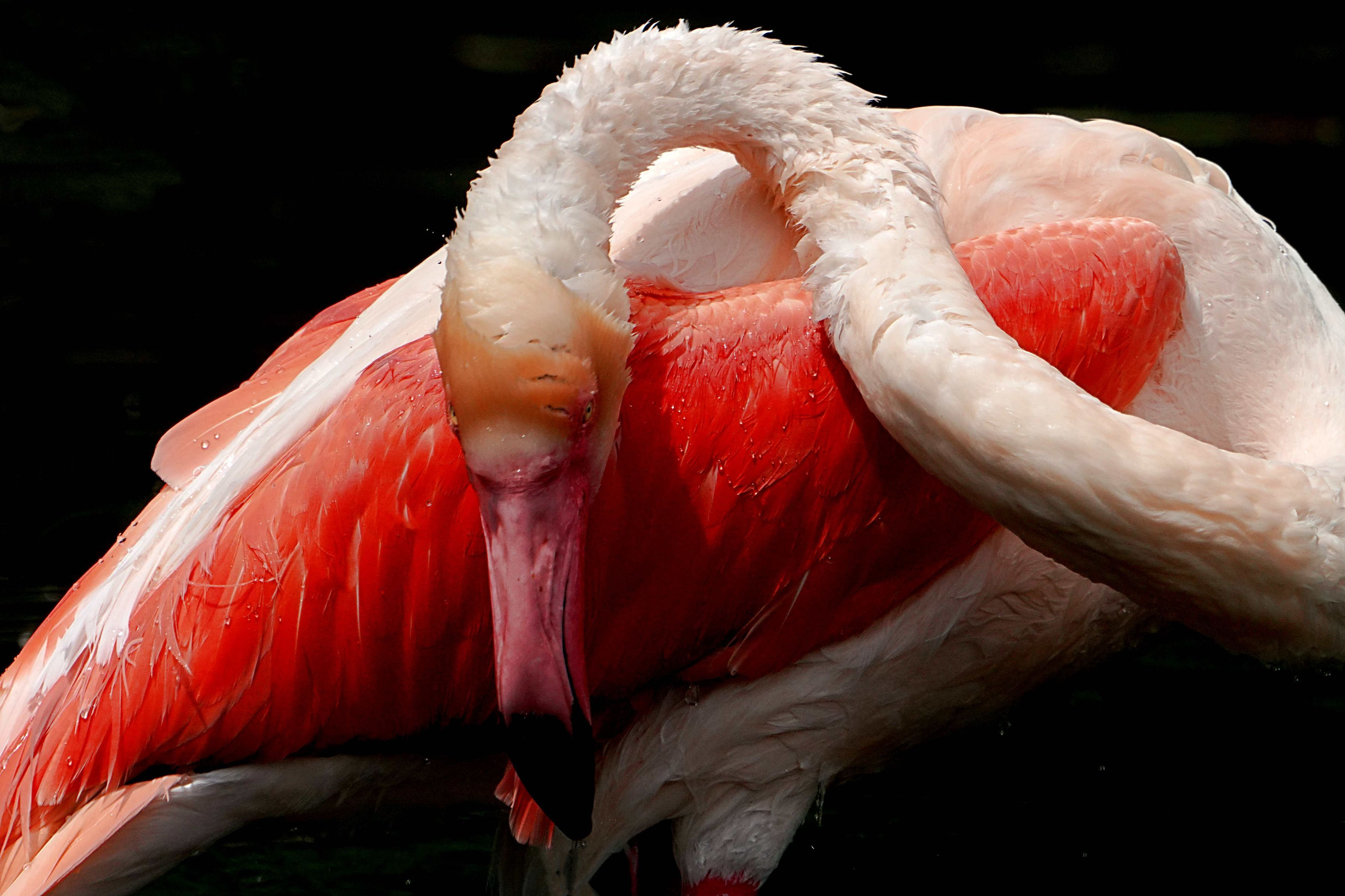 水辺の浅瀬で暮らすフラミンゴ 三態