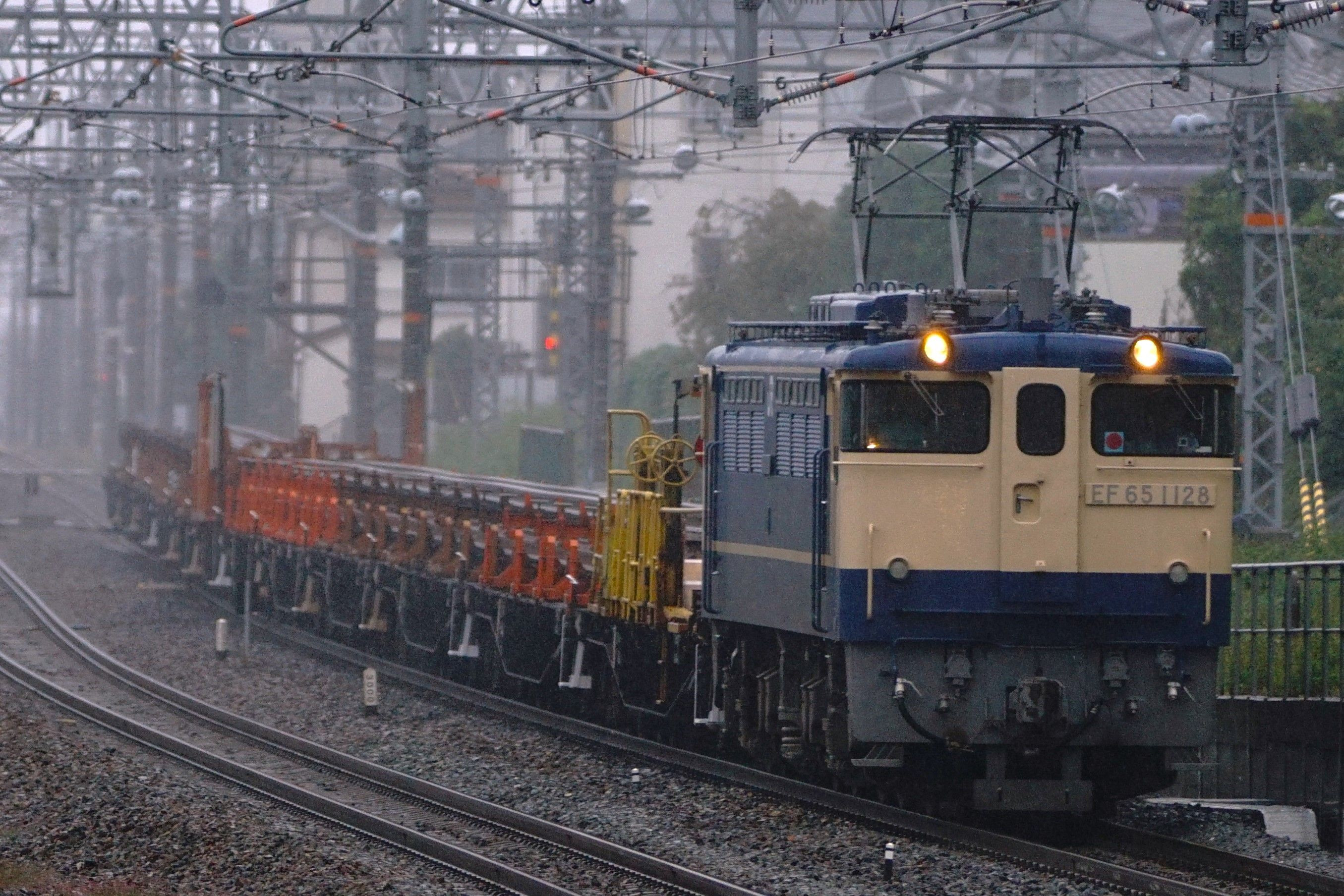 2018年10月10日 突然の豪雨の中をロンチキ工臨を牽引する1128号機 東海道本線 摂津富田~JR総持寺