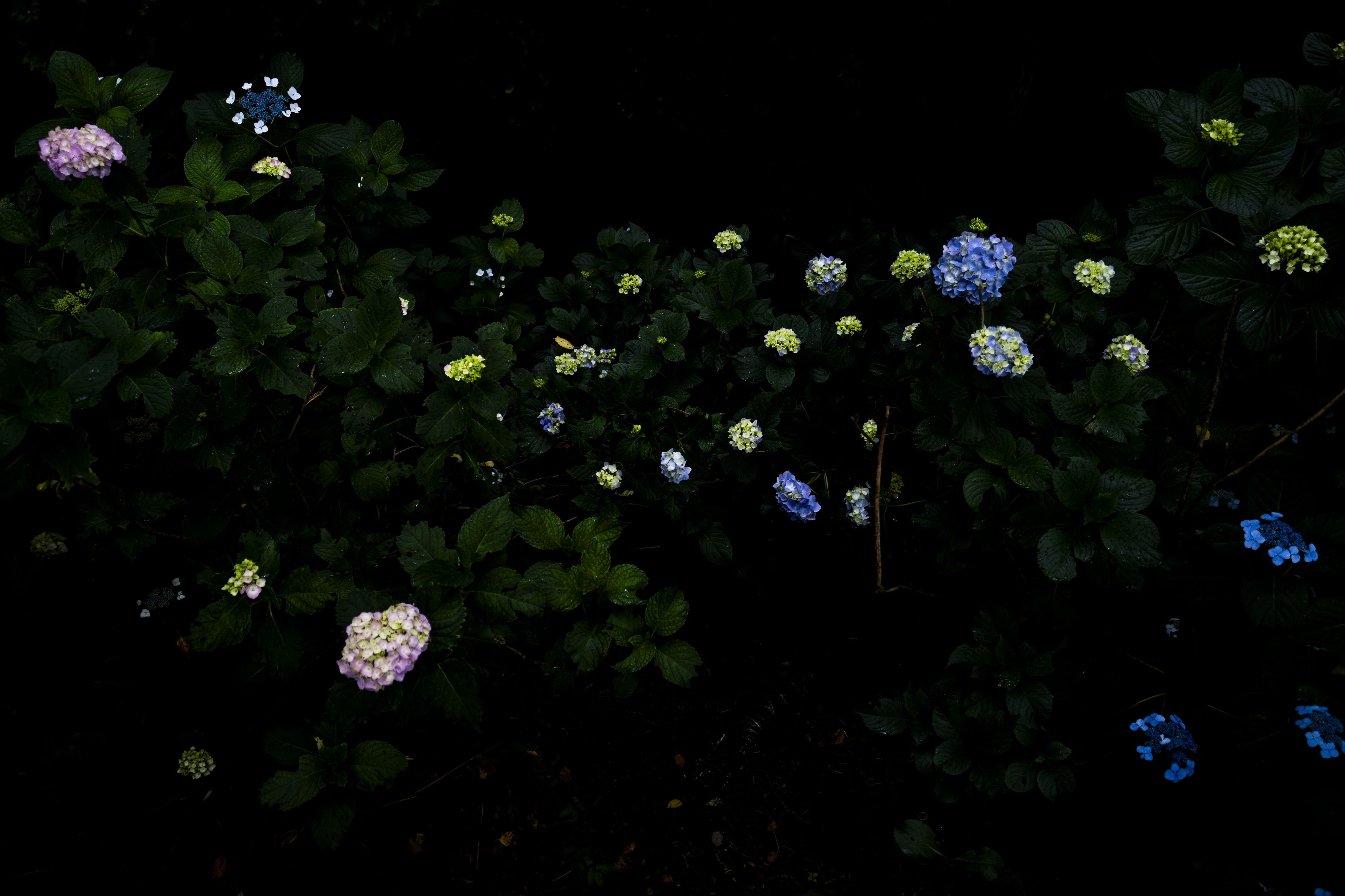 木陰の闇にまばらに咲く紫陽花の花たちが、それぞれ銀河のように見えました。