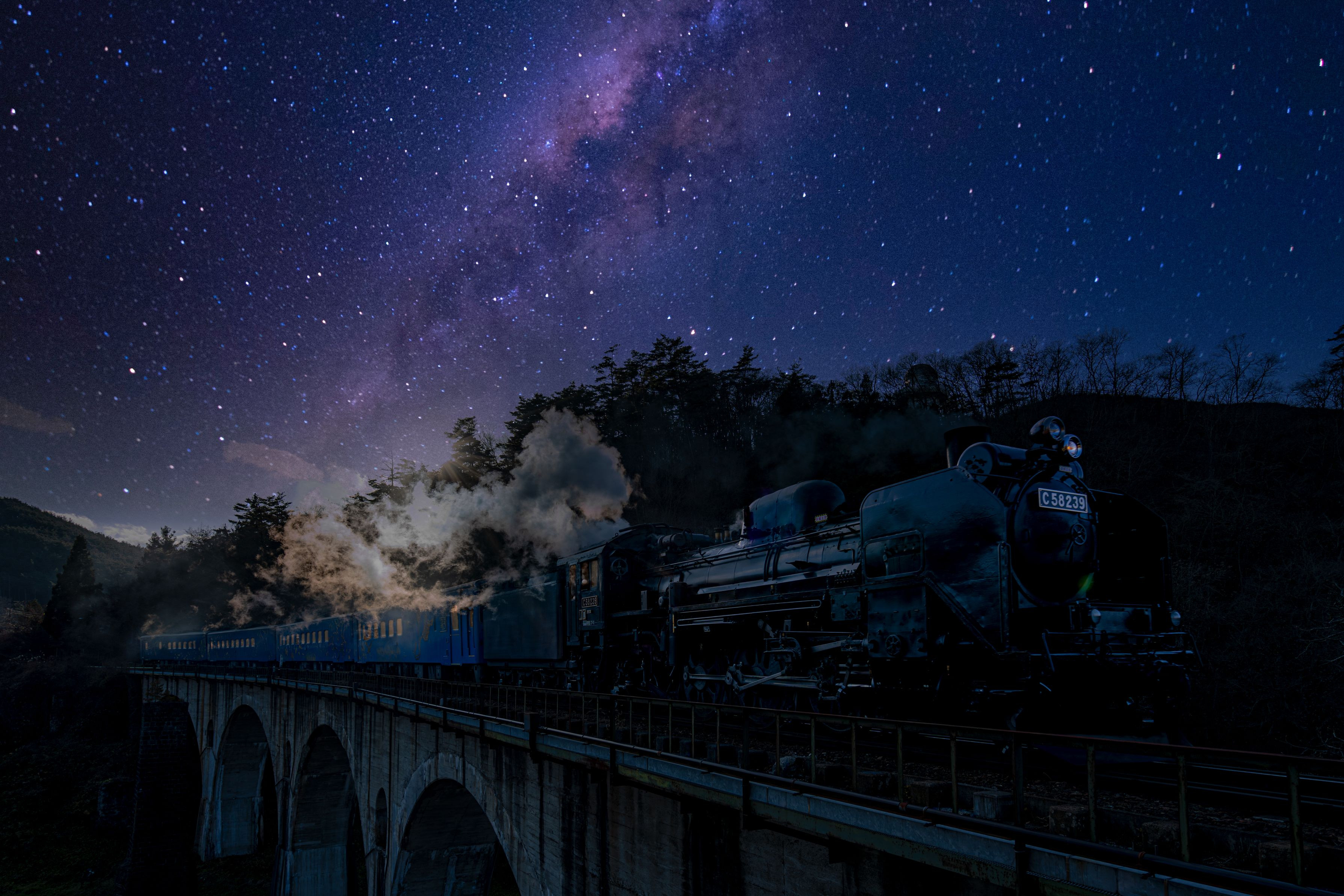 以前の投稿の際、空を暗く落とせば夜汽車の雰囲気になるのでは? とのコメントを頂き、ルミナー AIで空に天の川を入れ、 銀河鉄道の夜の雰囲気にしてみました。 この写真はお遊びなので、ブラボーは要りません。 コメント頂けると嬉しいです。