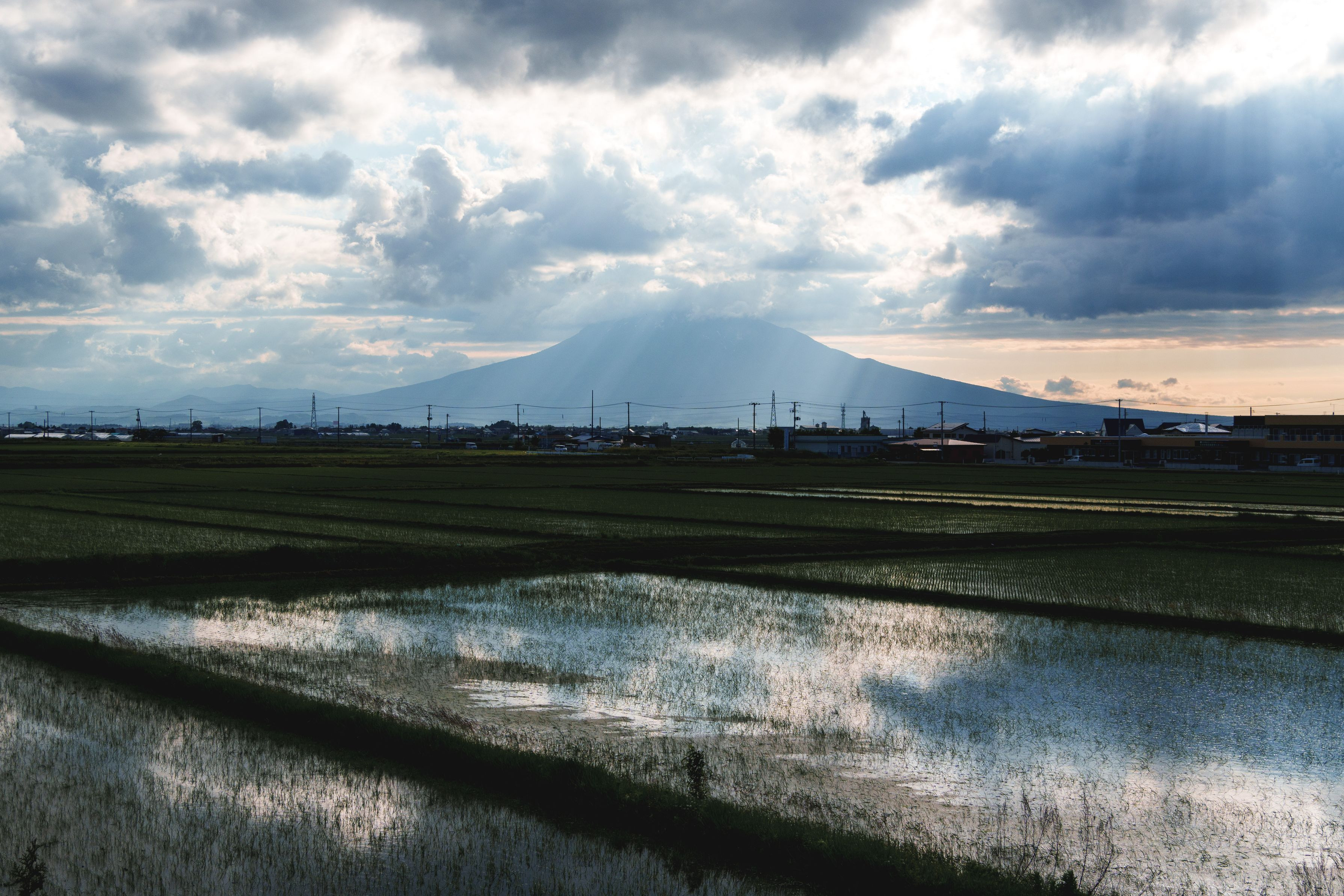 曇り空でしたが、岩木山のところだけ光芒がさしていたので撮りました。 神々しく光り輝いておられますね(^^)