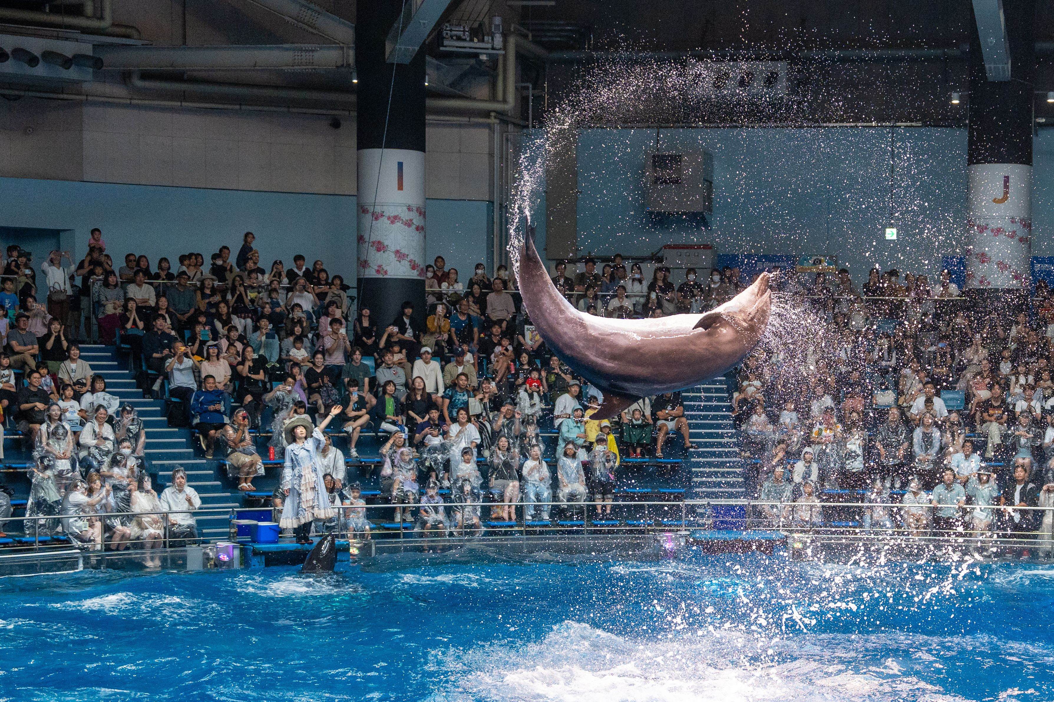水族館でイルカのジャンプはどこから出てくるのか分かりずらく難しい。連写の1枚。