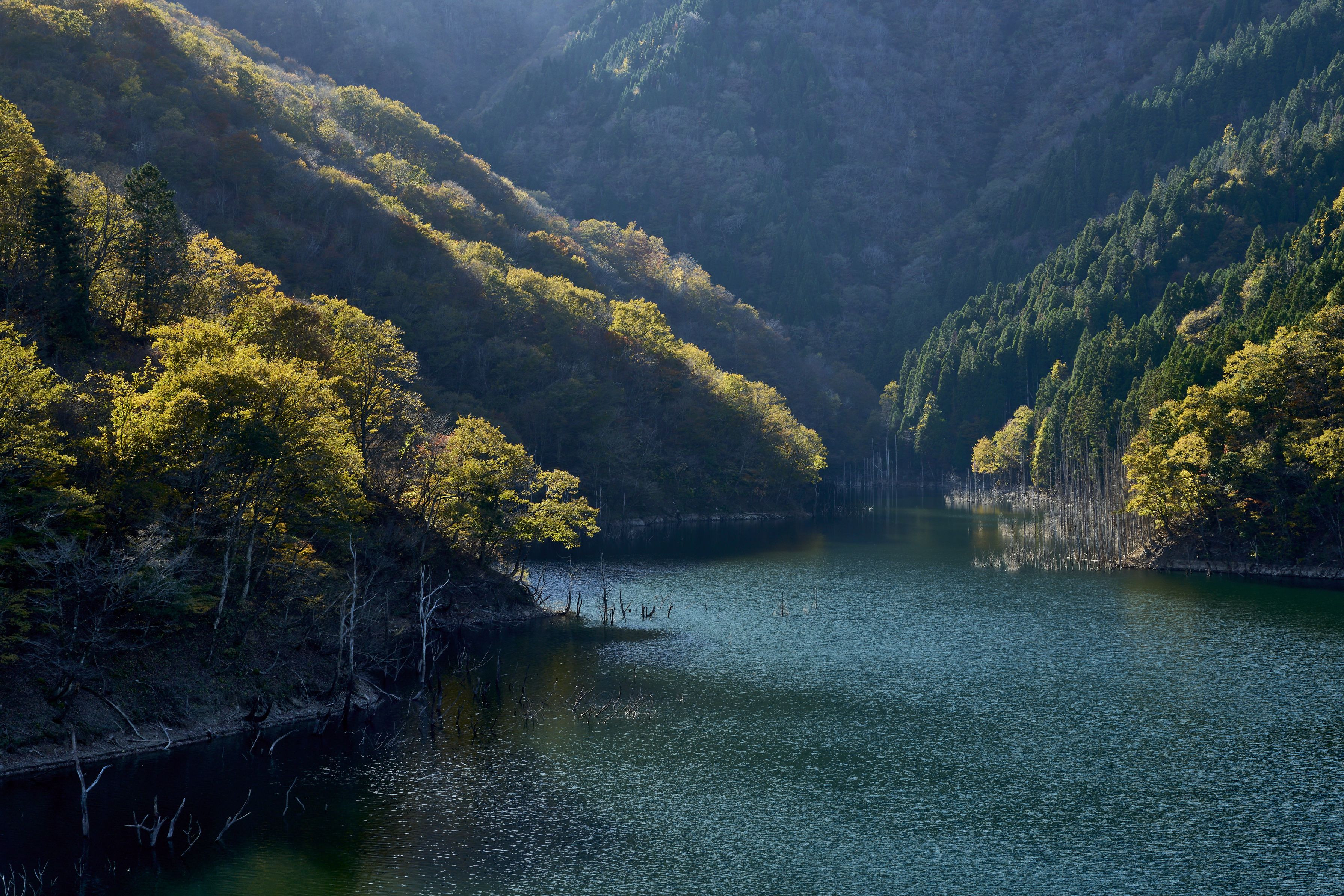 徳山ダムの夕景です 尾根に当たった光線が綺麗でした