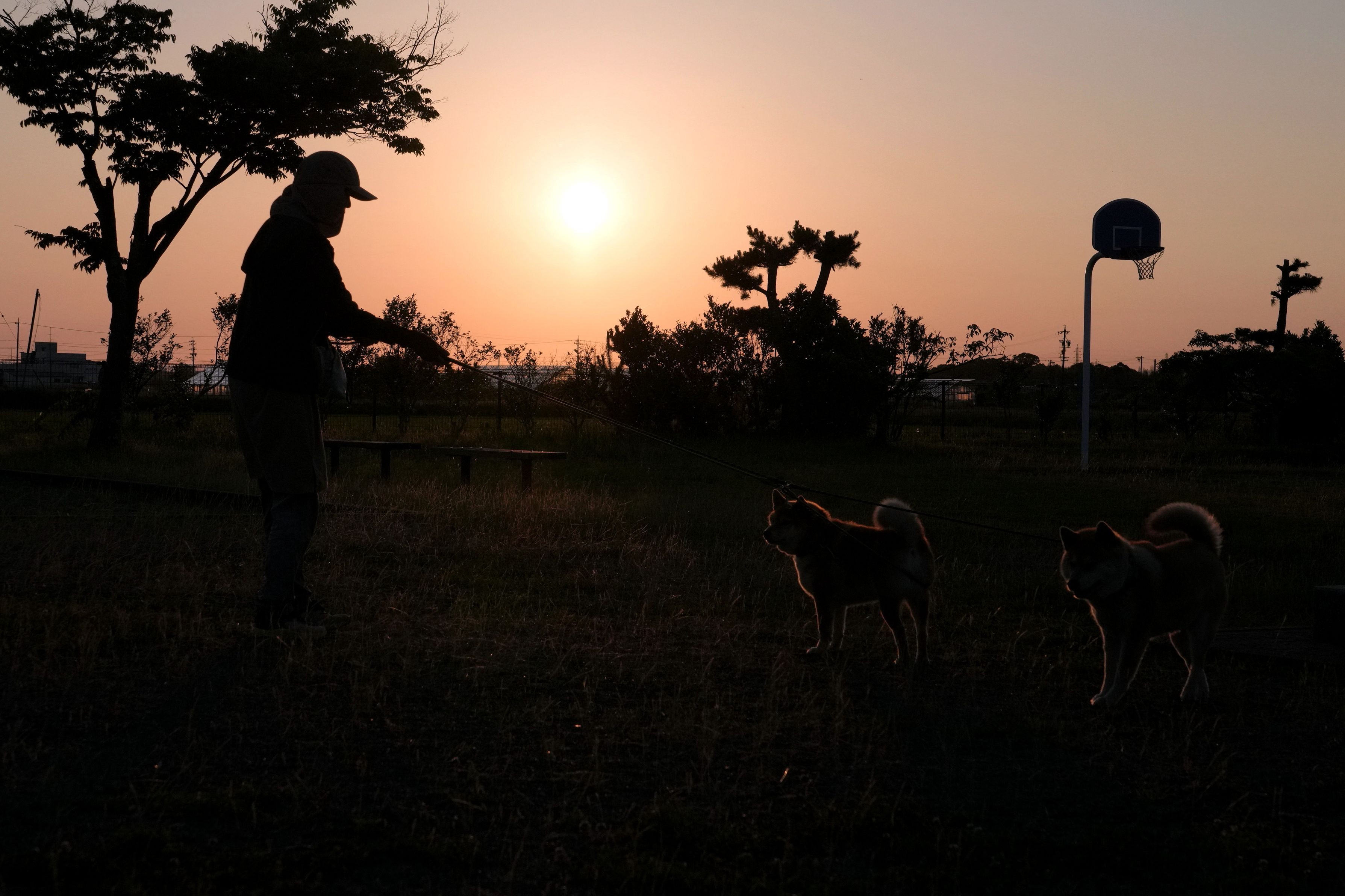 今日は暑い一日でした、夕方の散歩犬も嬉しそうです