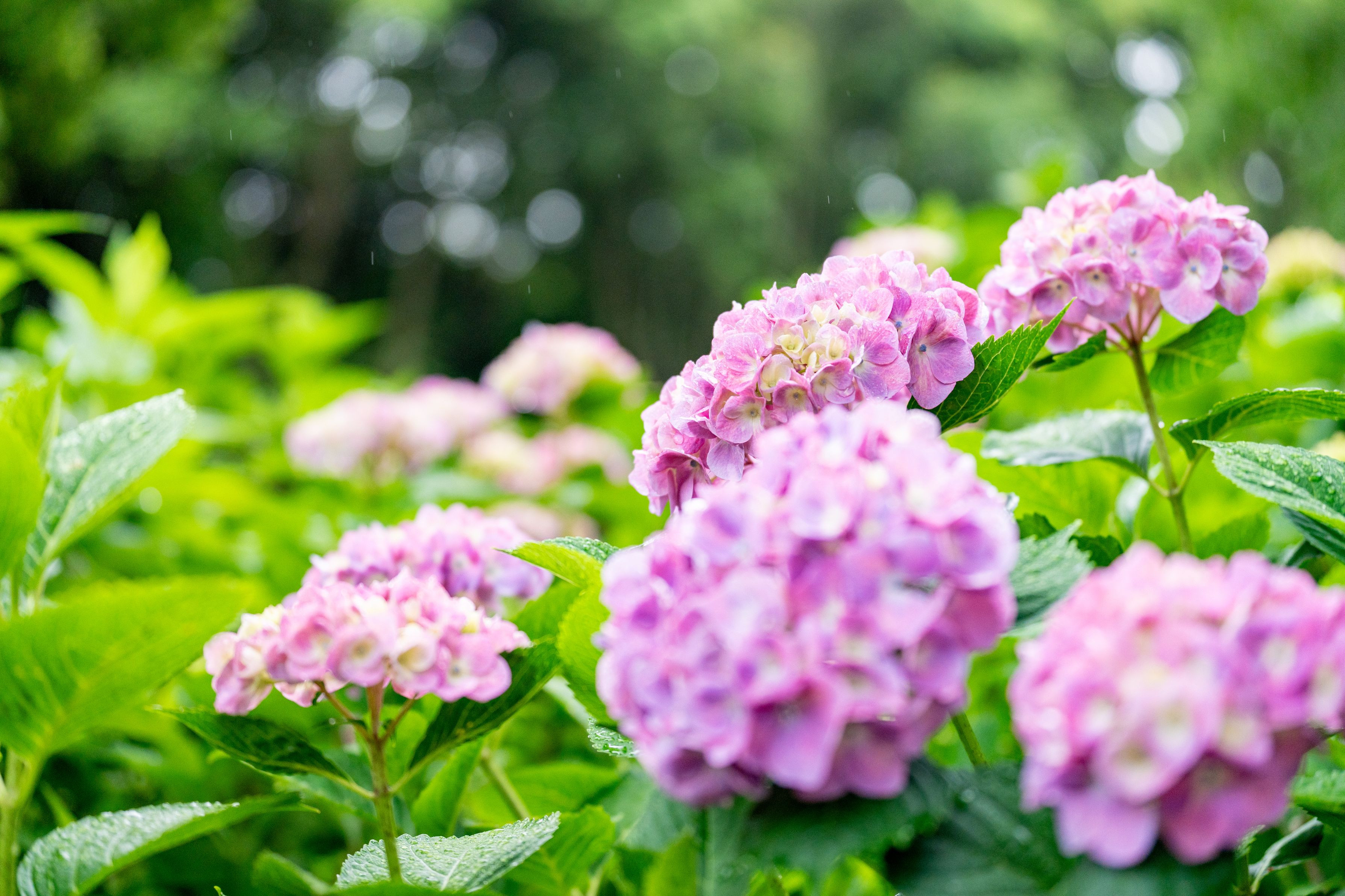 雨露に濡れる紫陽花