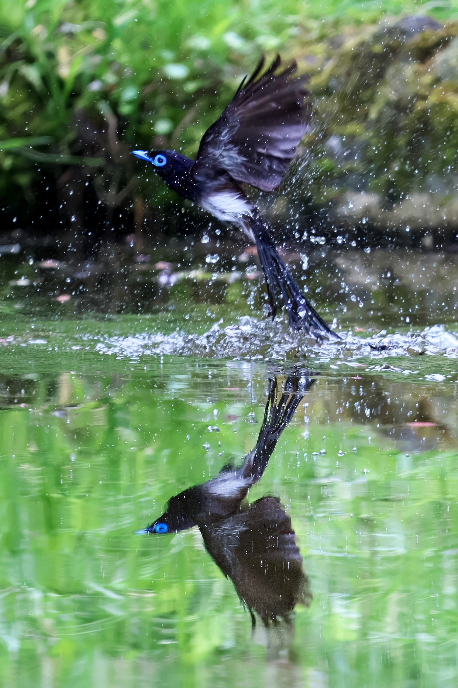 #サンコウチョウ#の水浴びです