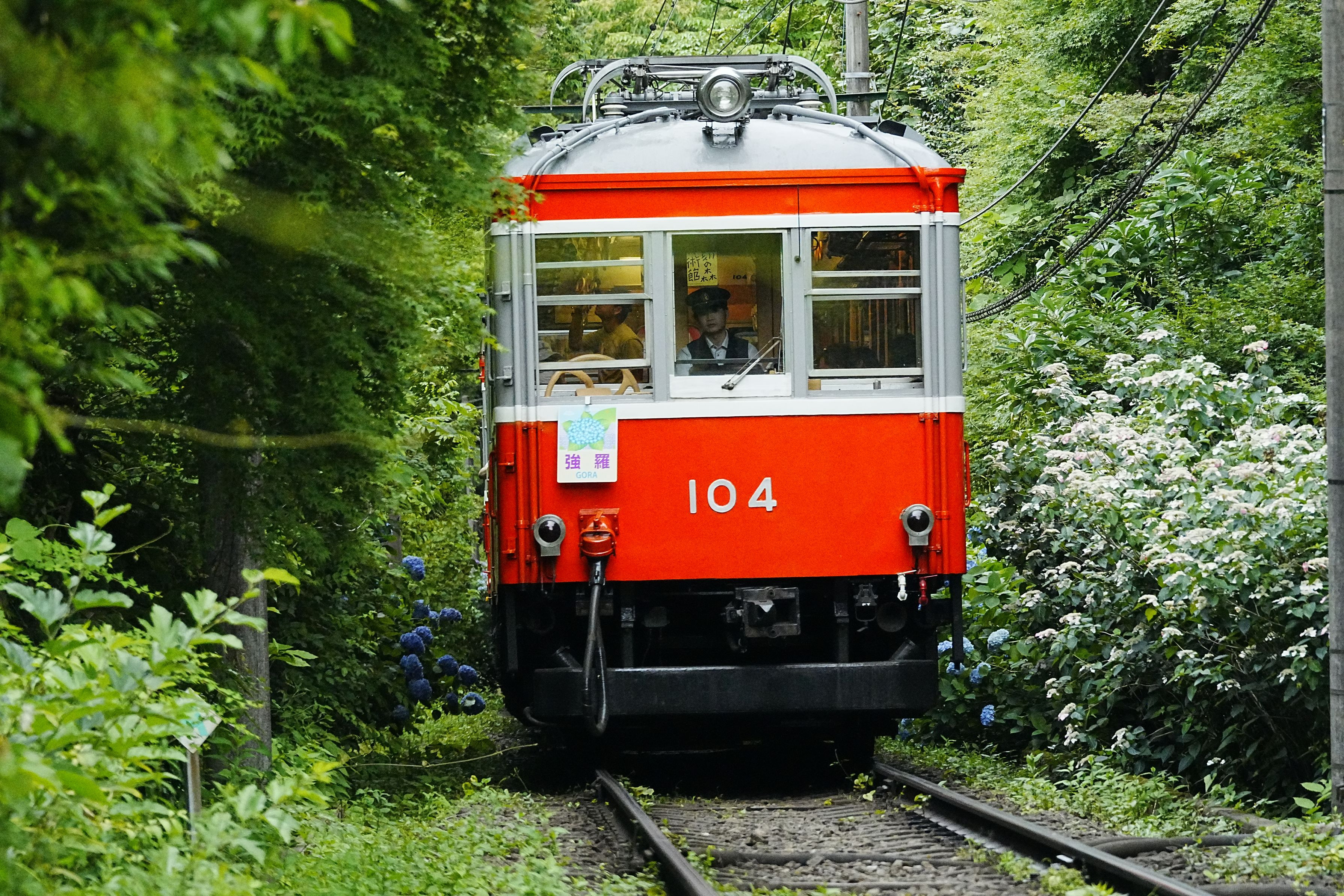 箱根登山鉄道大平台駅近くの有名撮影地からの箱根登山モハ1形とあじさいです。