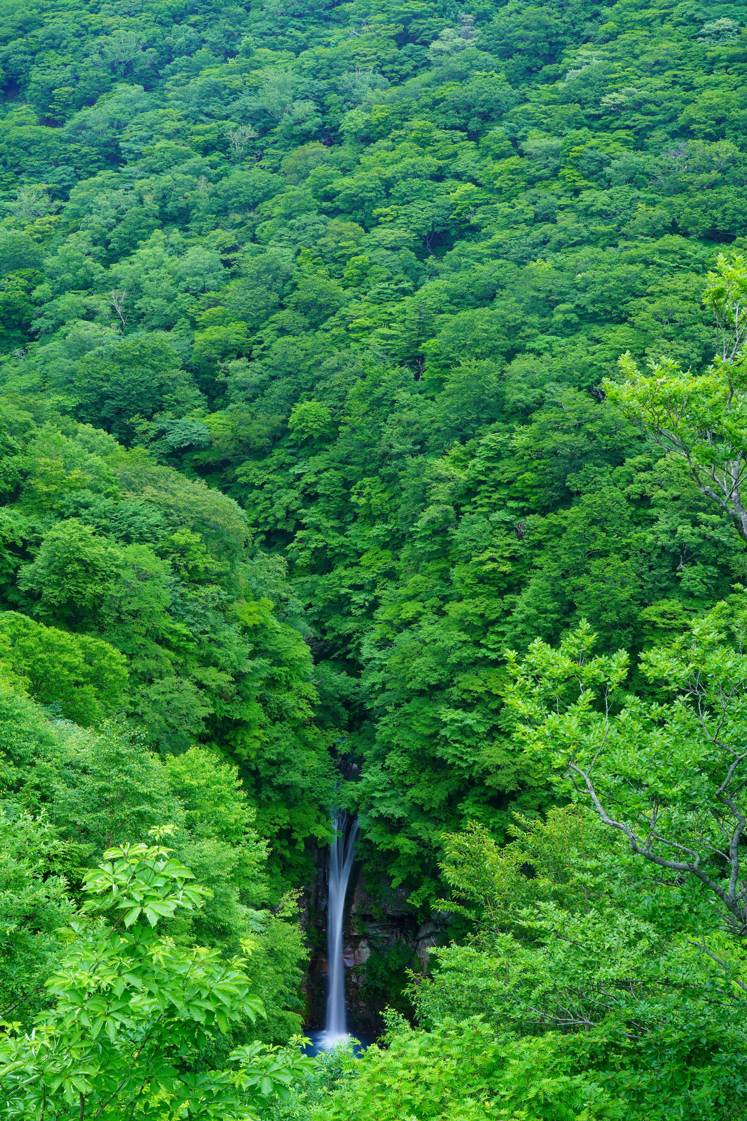 栃木県那須町の駒止の滝です、森の中に滝の音が響きます。
