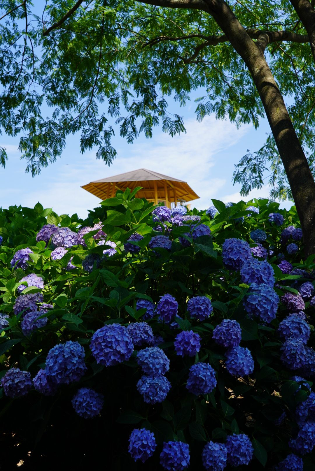 夏のような日に、青空と青いあじさいがリンクしていました。
