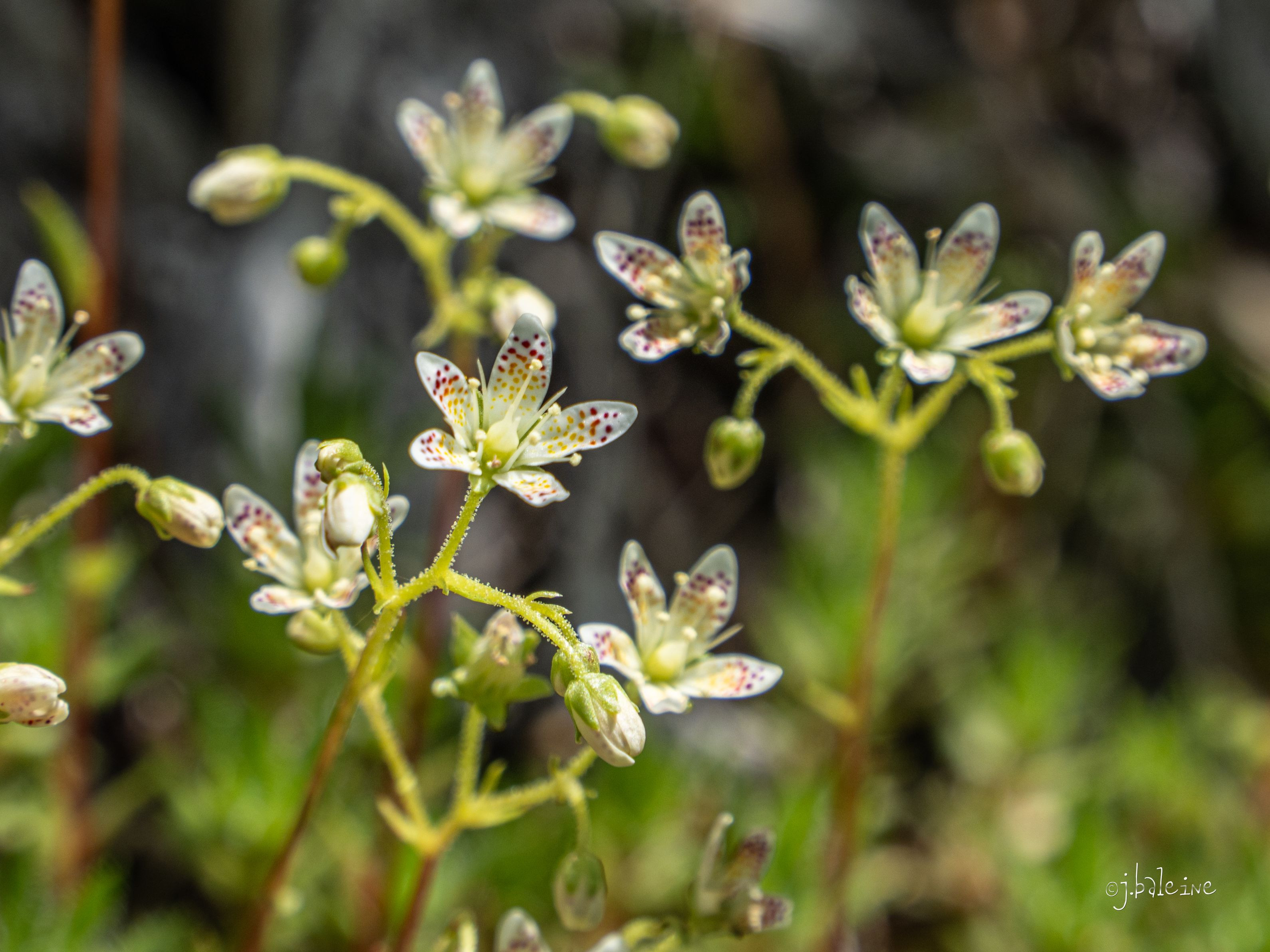 高山植物の小さな花です。 花びらに小さな赤い斑点があり群生しているのが特徴です。 登山者に人気の花でマクロレンズで撮ってみたい花です。