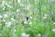 シロツメクサがたくさん生えていたところにスズメさんがお散歩していたので撮らせて頂きました。 カメラ目線もくれてサービスしてくれました(^o^)