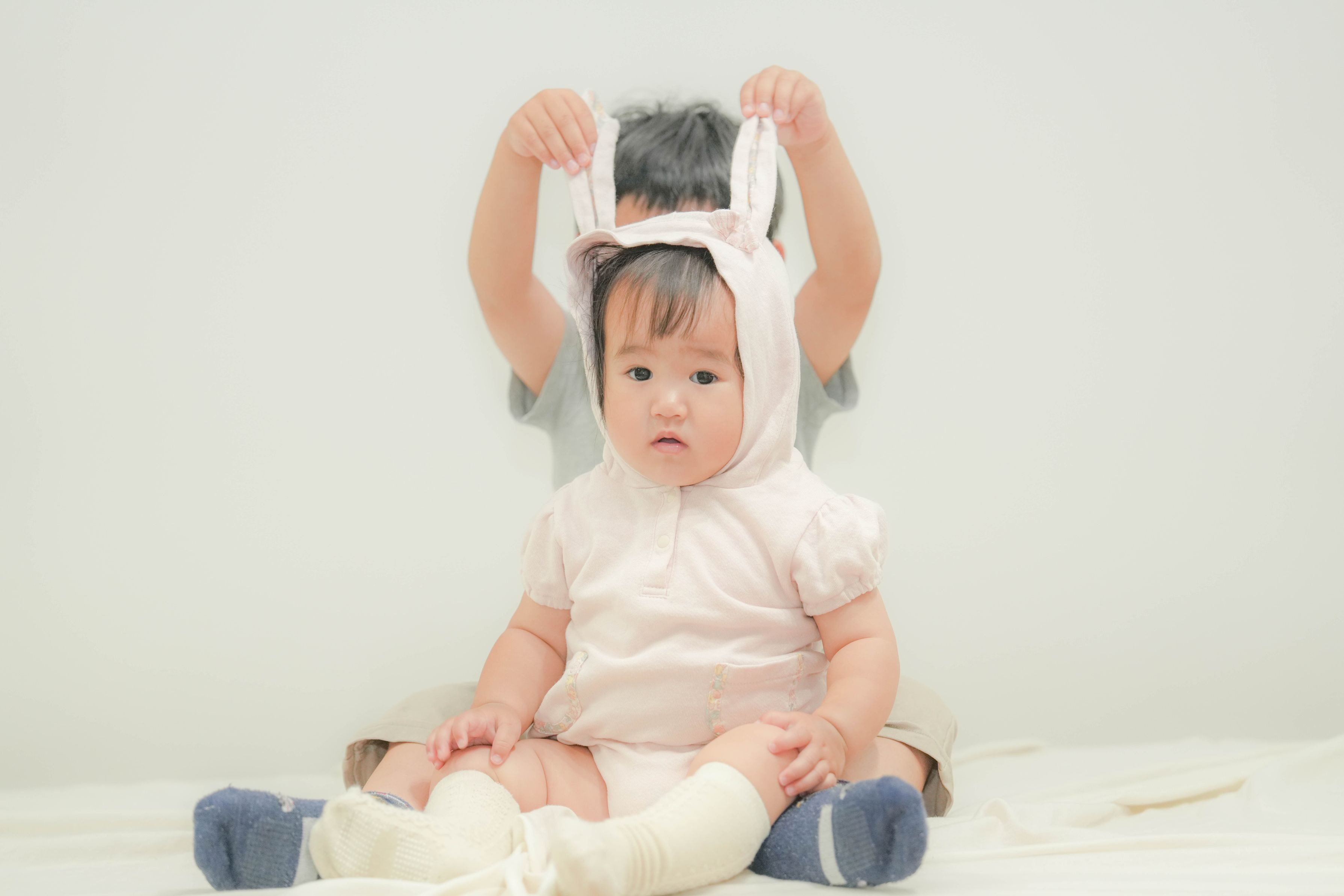 自宅で韓国風フォトに挑戦した時の1枚 最近は兄妹ともにカメラを向けると、ポーズを取ってくれるようになりました。 親としては助かっています。