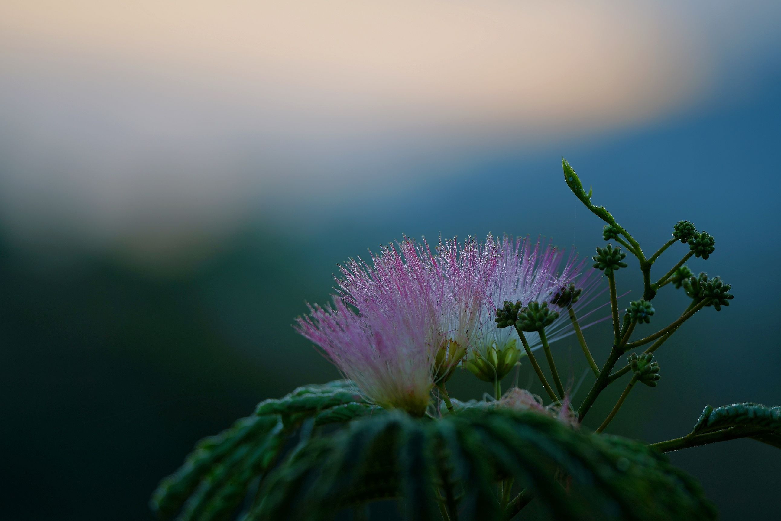 早朝のねむの木 水滴がついて瑞々しい感じです。 レンズ:タムロン50-400mm