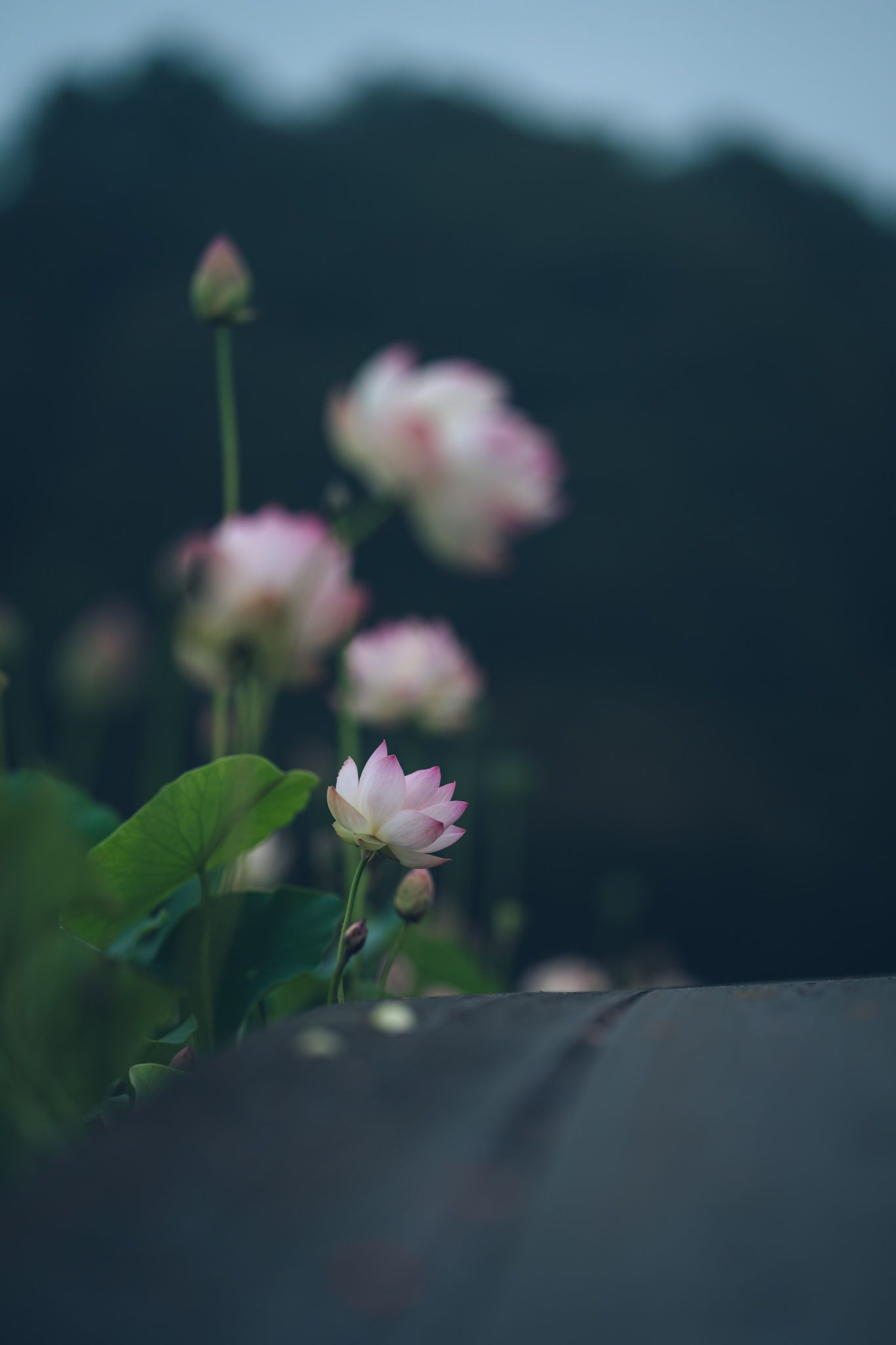 夜明け前の雨上がり 蓮の花の池は深い霧に包まれてました