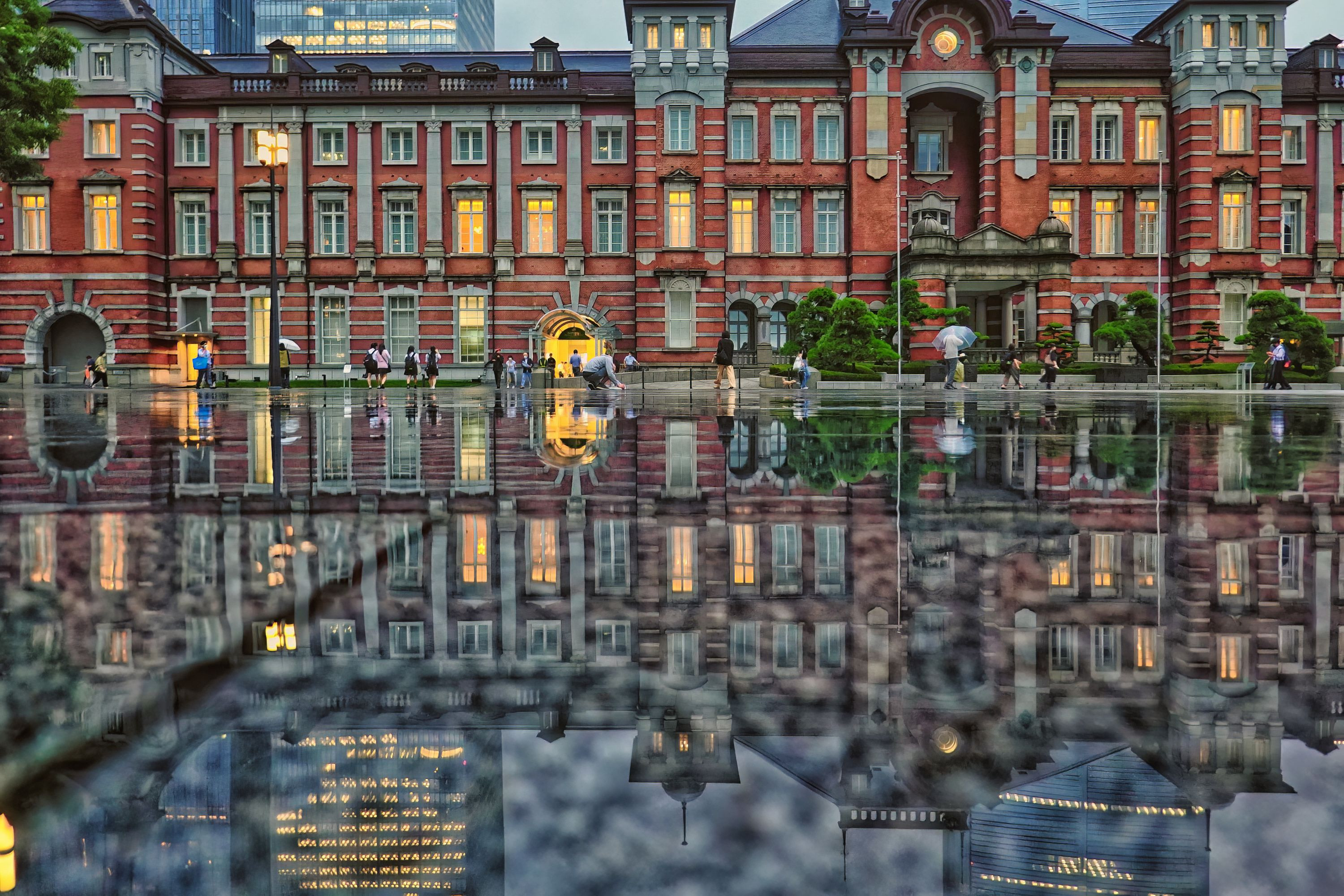 「雨が止んだら…」 雨が止んだら、そこにはシンメトリーな世界が広がりました。 コンデジ撮影データをこってり仕上げ! 東京都千代田区 東京駅丸の内駅前にて