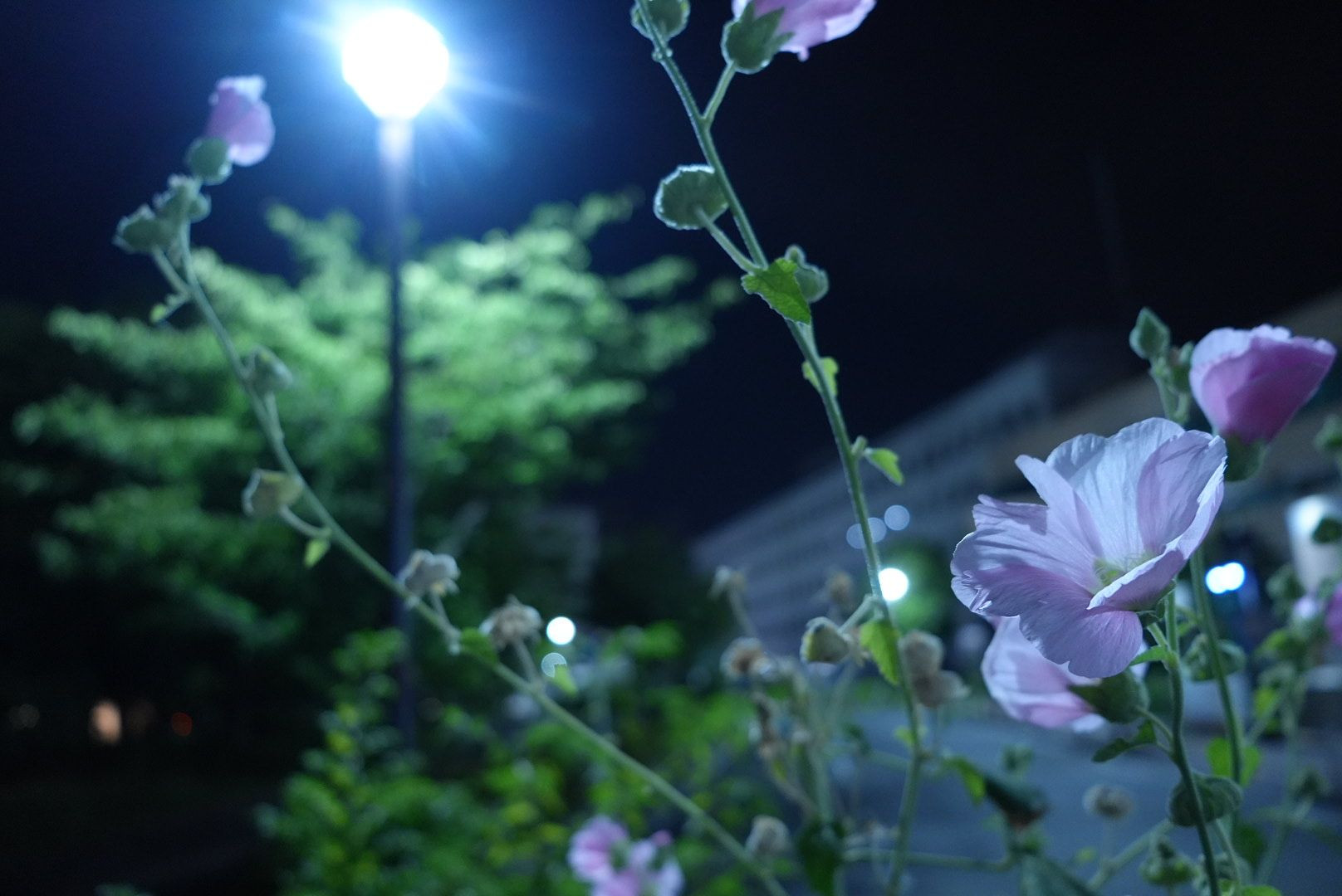 何の花なんだろ。 昼は子供達で賑わう公園も深夜は誰もいない静けさ。 そんな公園の片隅に咲く花