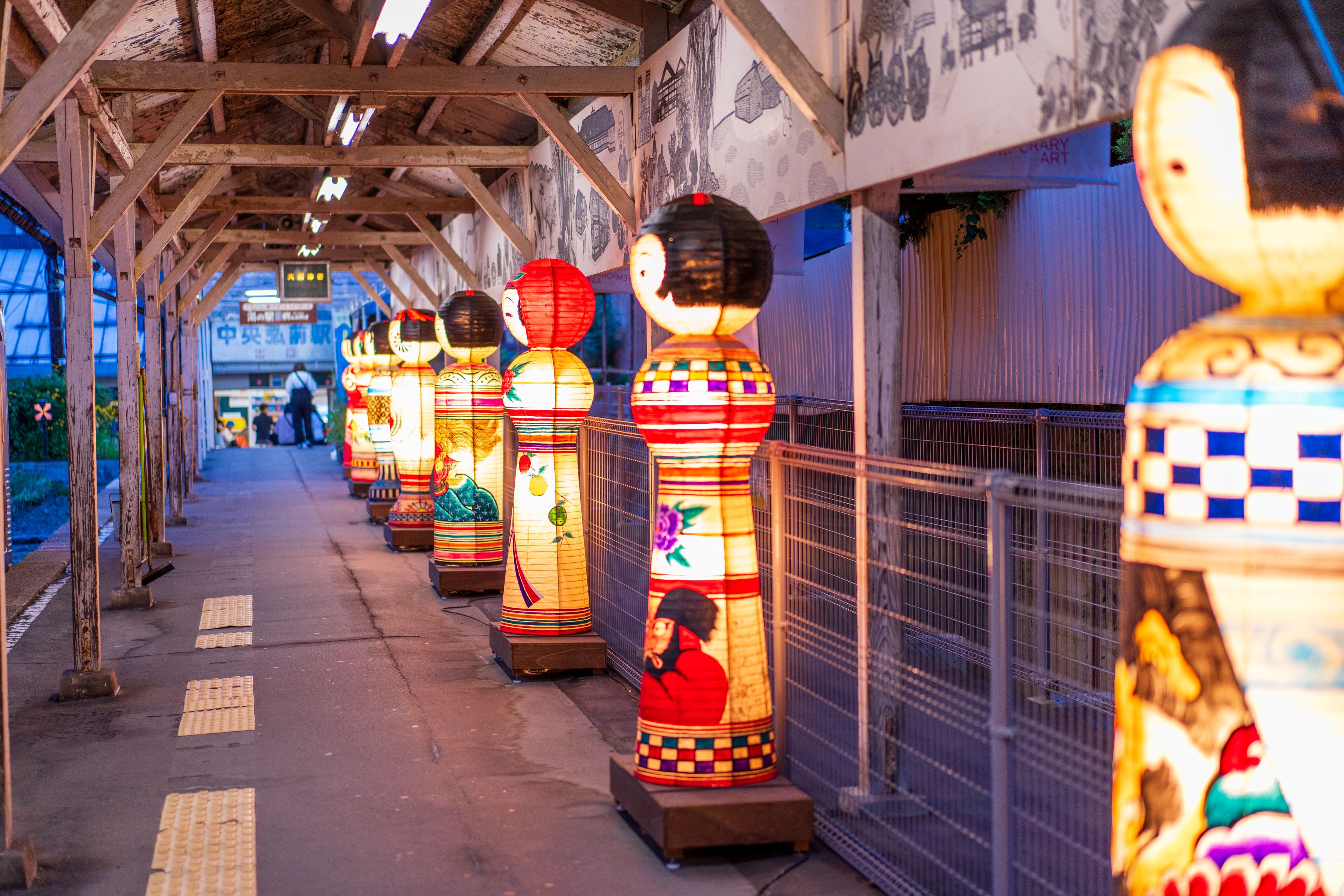 大鰐線夜の駅風景です