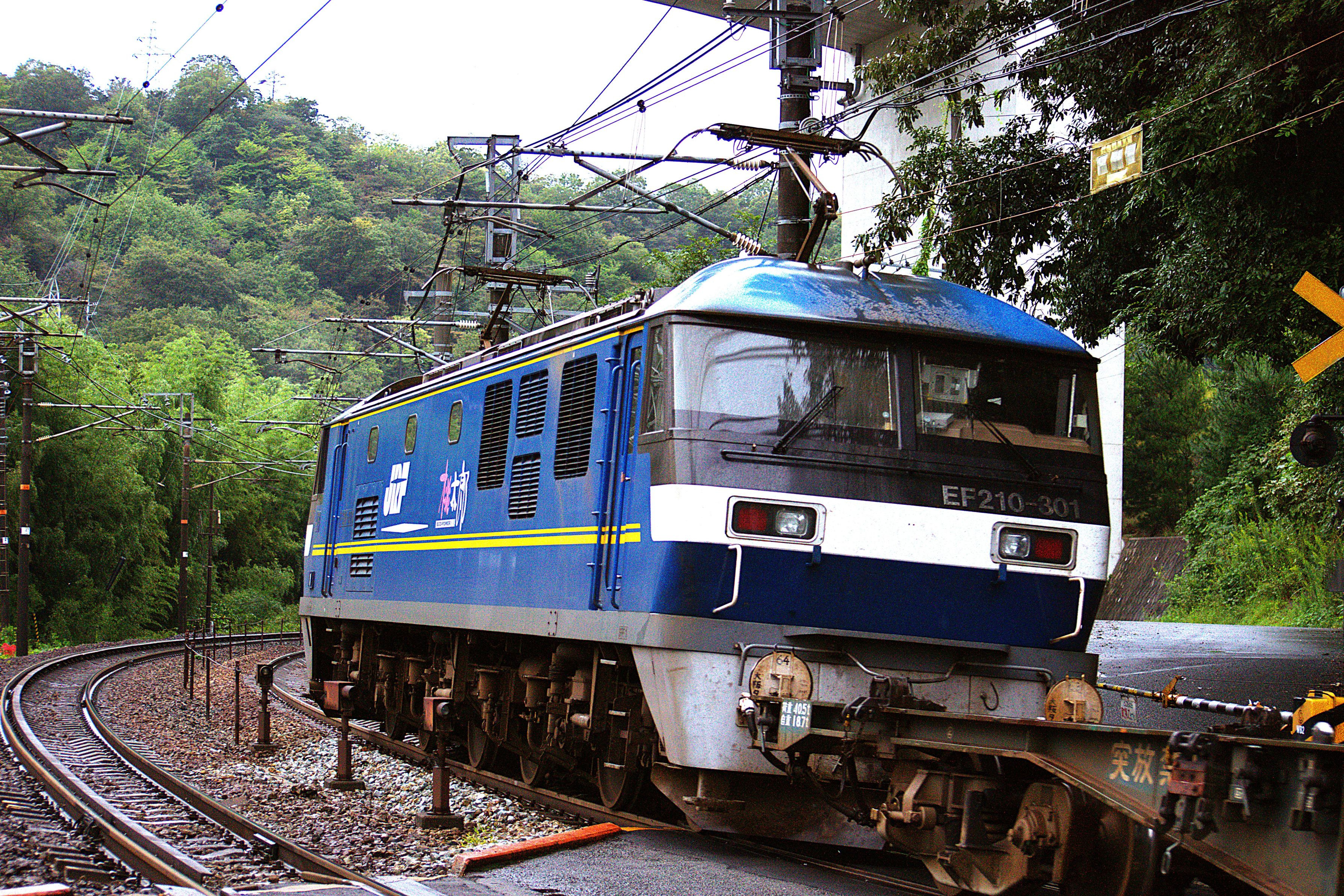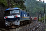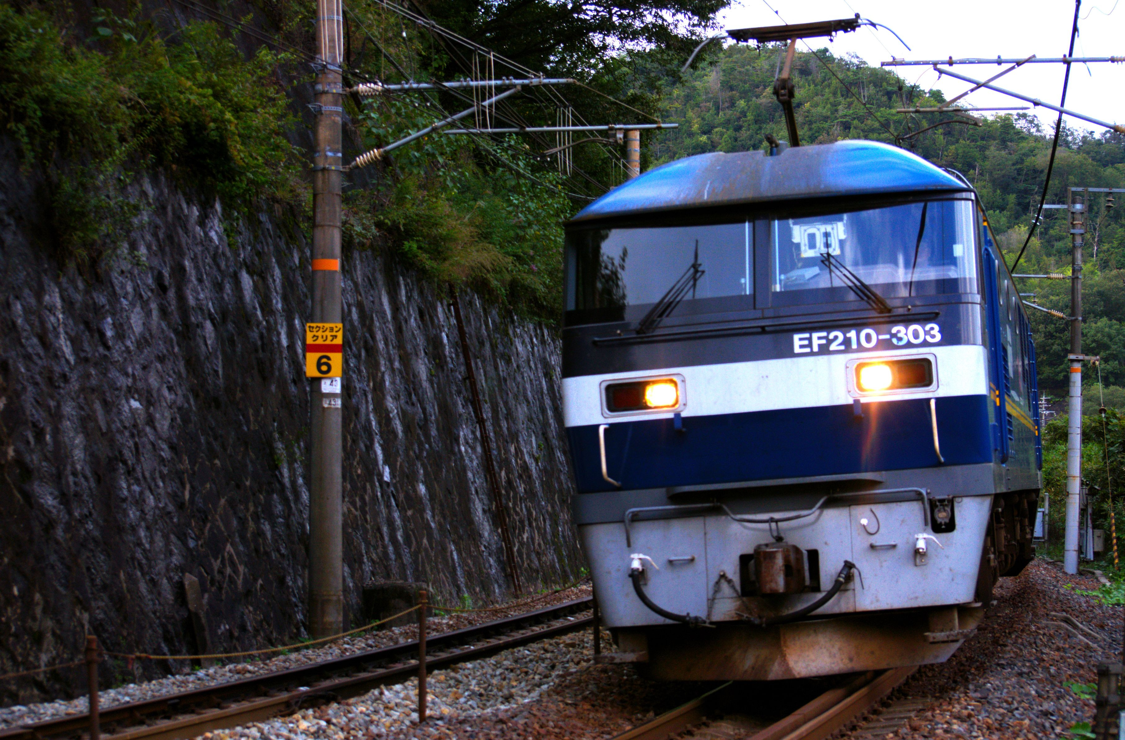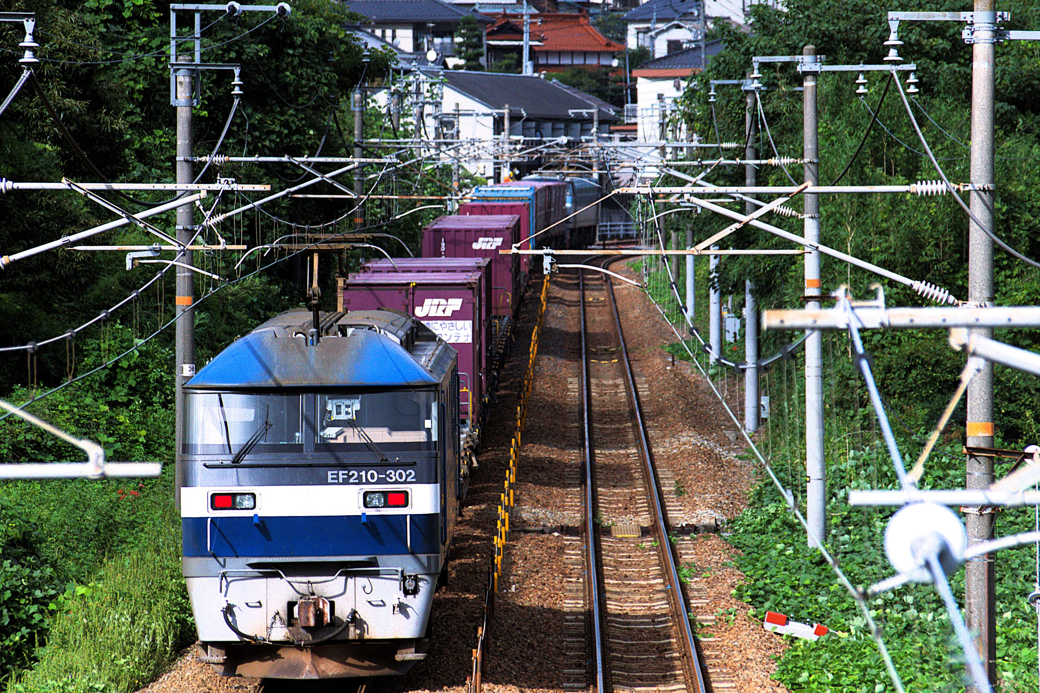 瀬野駅の手前の直線勾配を登るEF66100番台の後補機を担当するEF210-302号機 山陽本線 中野東~瀬野