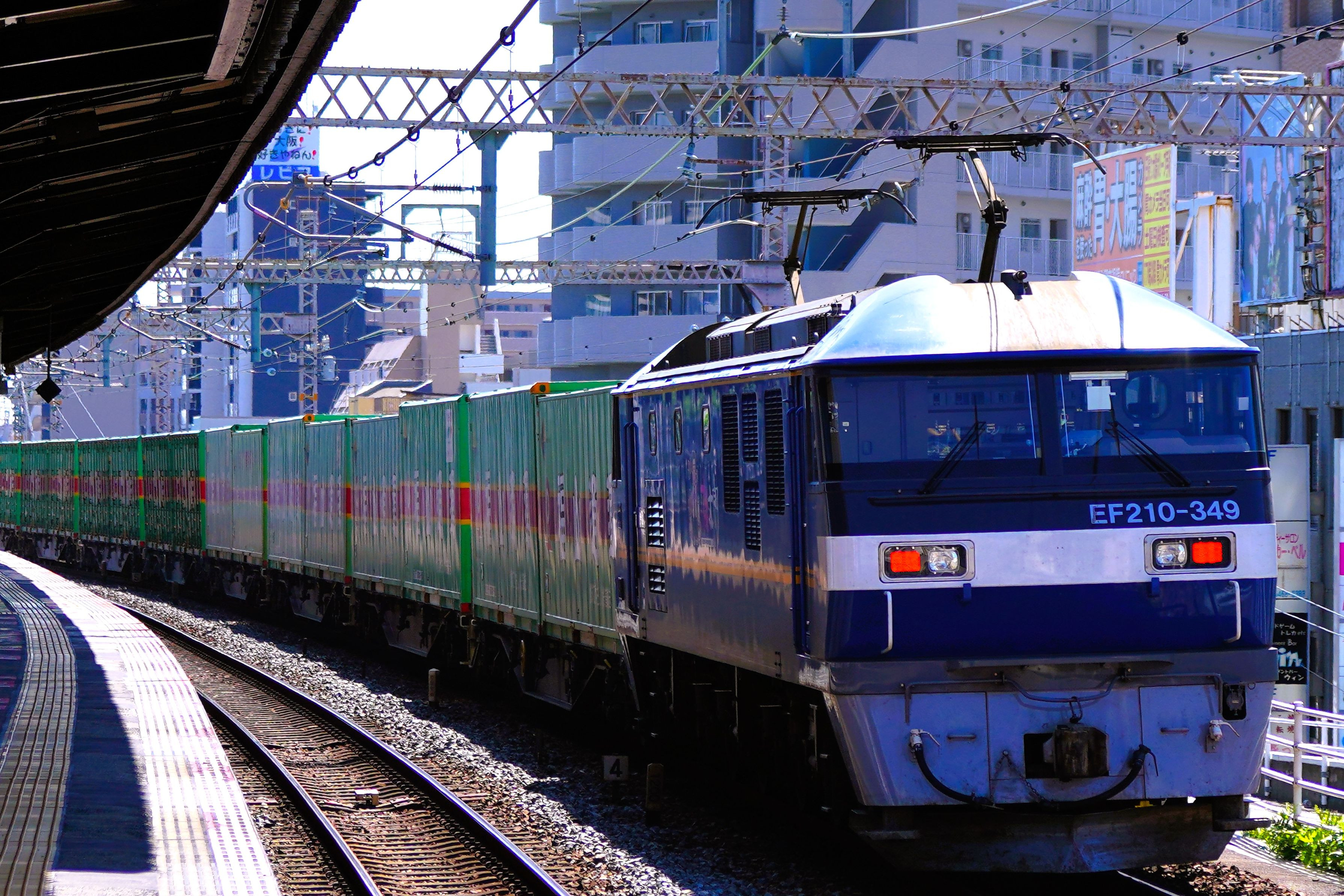 野田駅を通過する梅田貨物線の59レと後補機のEF210-349号機 梅田貨物線 野田