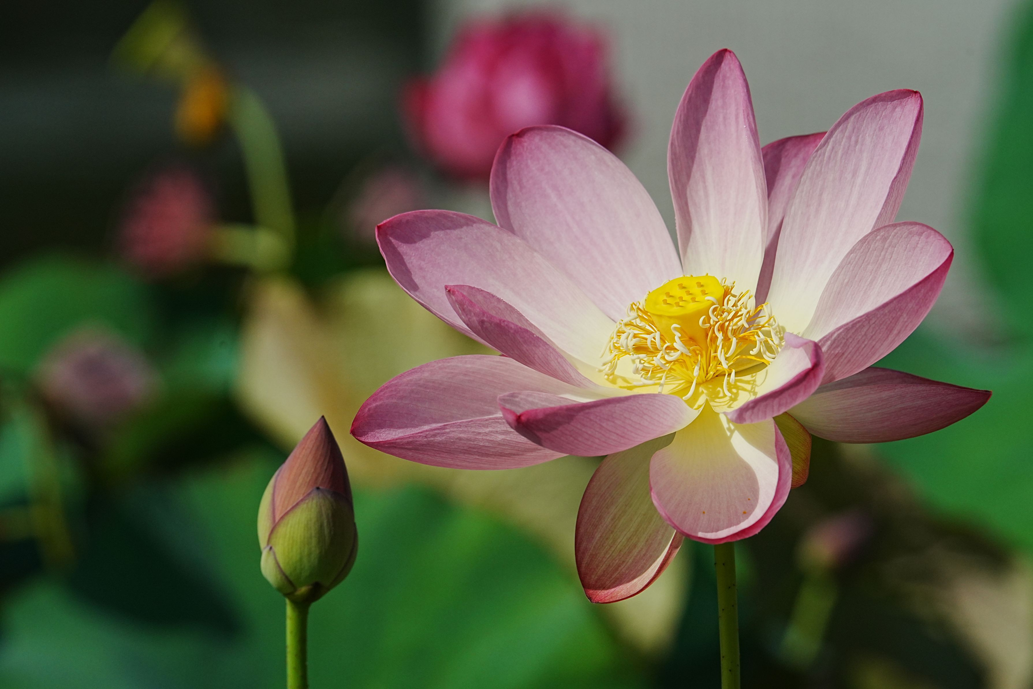 大阪鶴見緑地公園の咲くやこの花館前の蓮の花