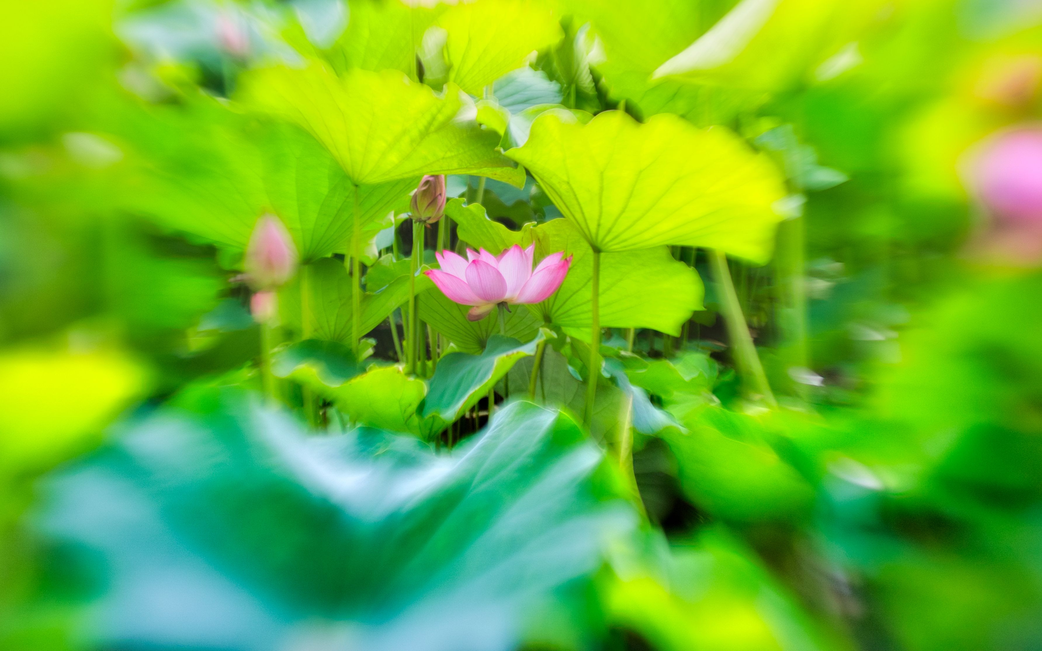 足立区立・足立堀之内公園の大賀ハス 背景の葉っぱを幻想的にボカして風でふわっと葉っぱが 揺れる動きを表現しました。#東京都# オールドレンズ【MIR-1B M42 37mm F2.8/逆前玉】放射状・非点収差ボケ