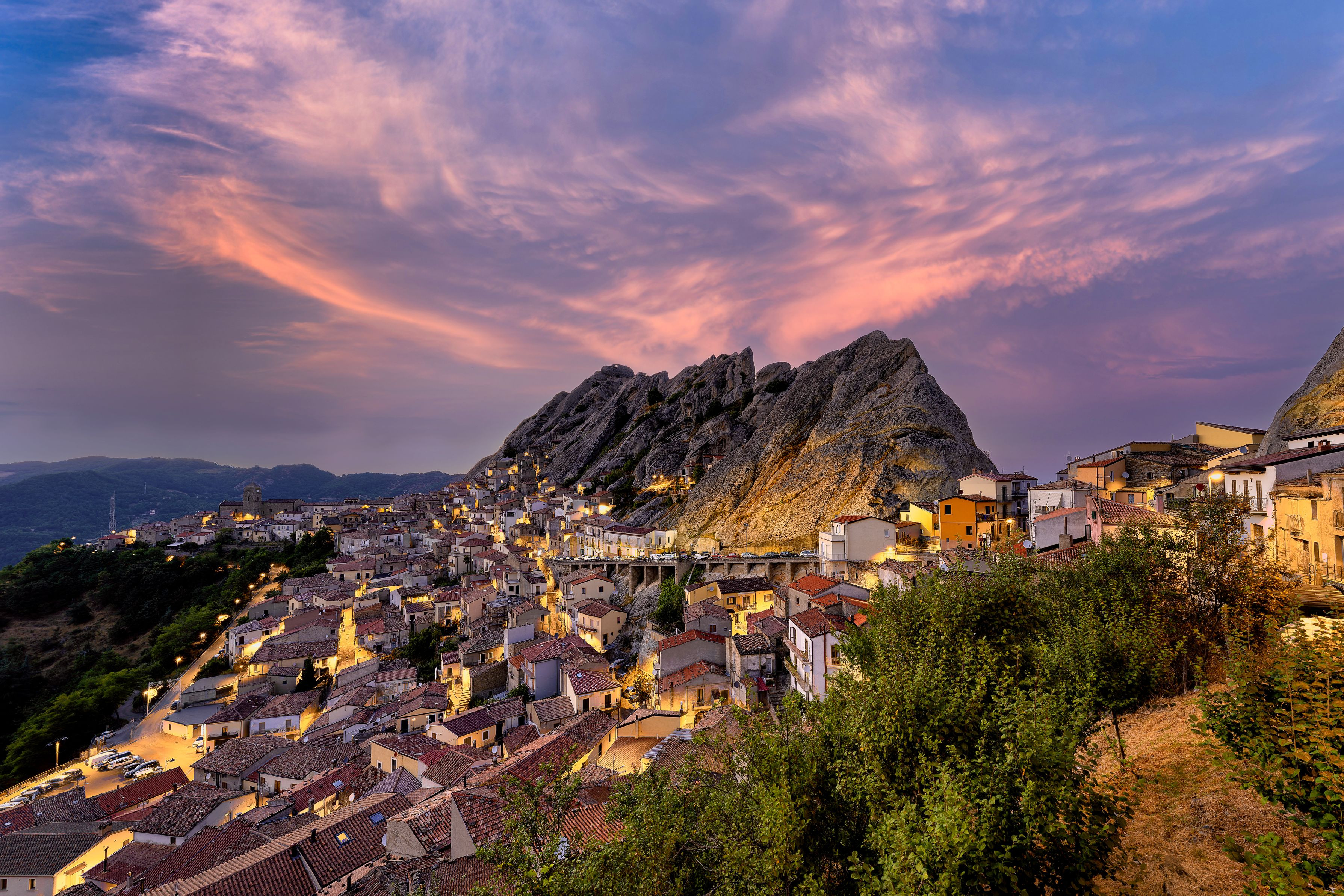 巨大な岩山と一体化した街並み、不思議なイタリアの風景です。有名な場所なので、世界中の素晴らしい写真家たちに散々撮られていますが、私も頑張りました!