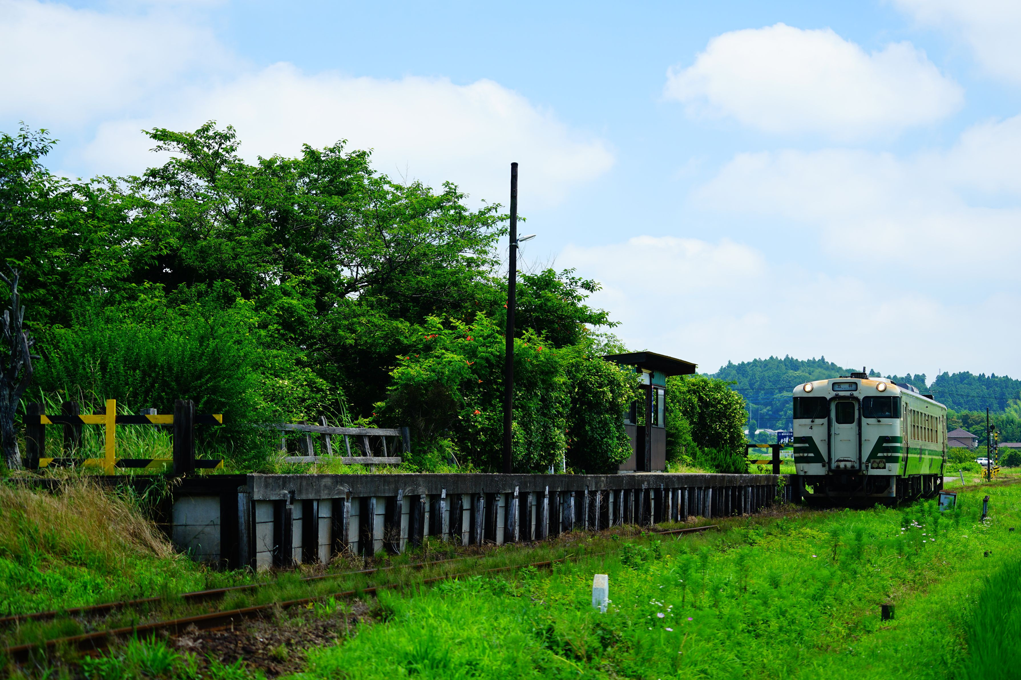 夏空と踏切と気動車