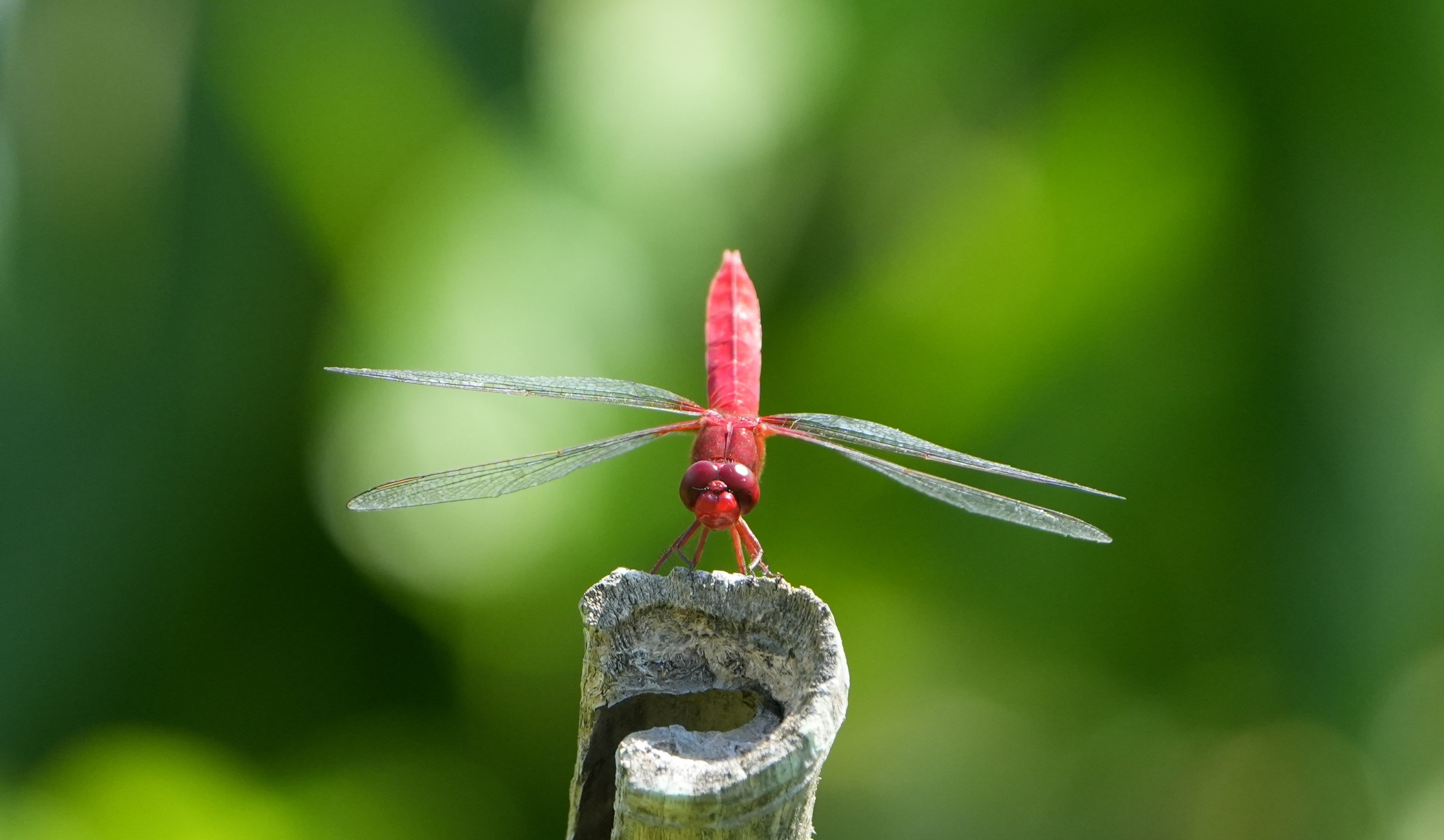 いつものウォーキング、リバーコースにて 真っ赤なトンボ 図鑑で確認すると、ショウジョウトンボに似ています