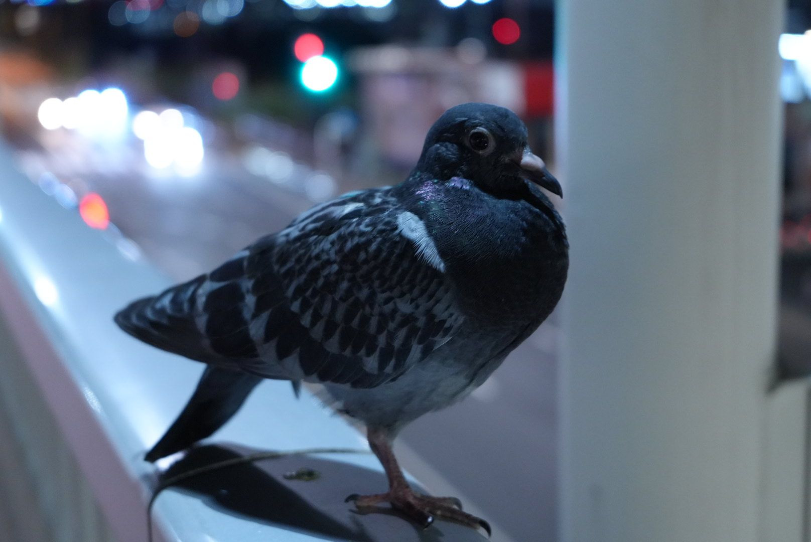 深夜駅前にいた鳩。 なぜか近づいても動かない