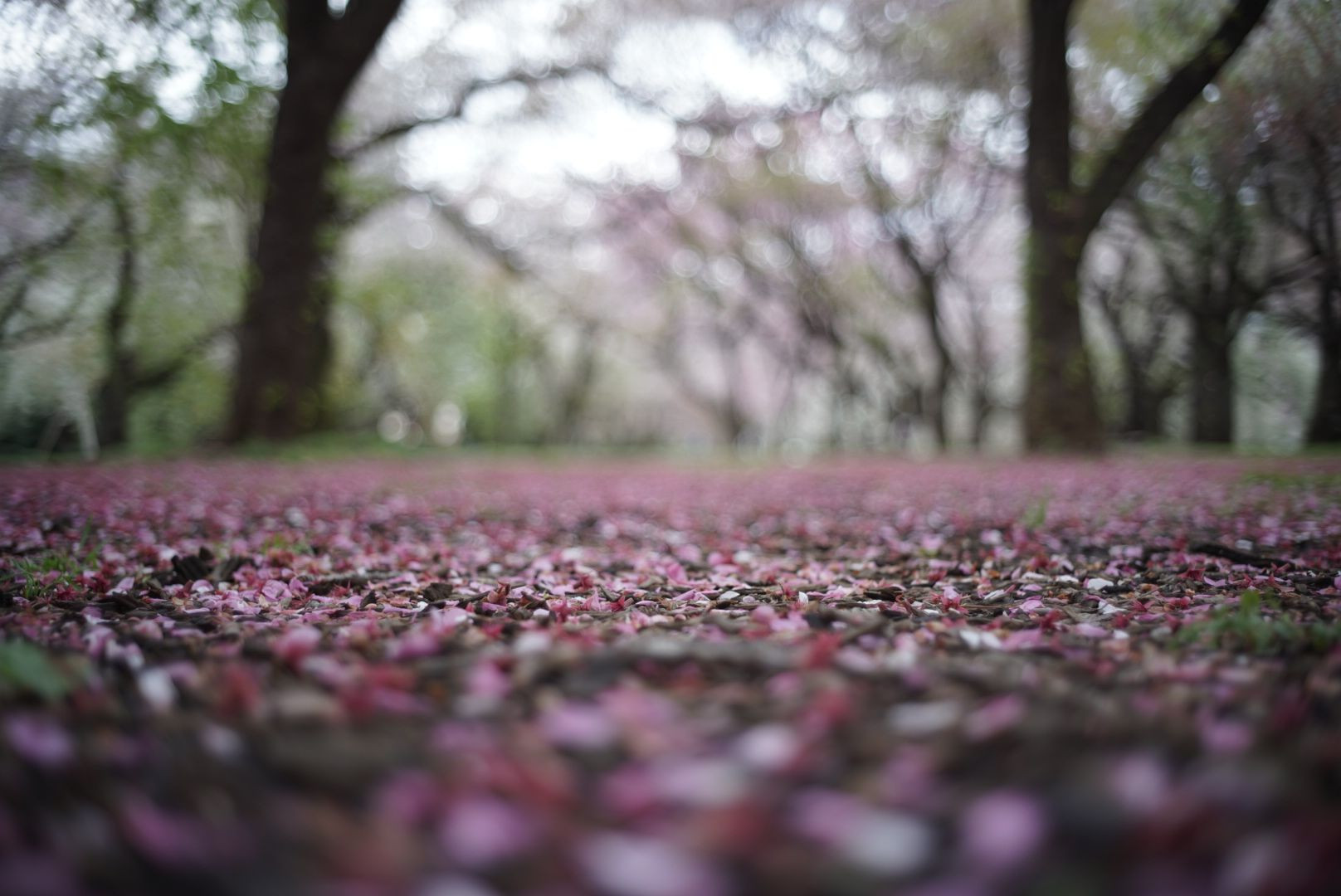 雨上がり早朝の公園で、上に咲いてる桜よりも 絨毯のように大地に落ちた花びらが 愛おしく。最後まで愛でていたい気持ちになる
