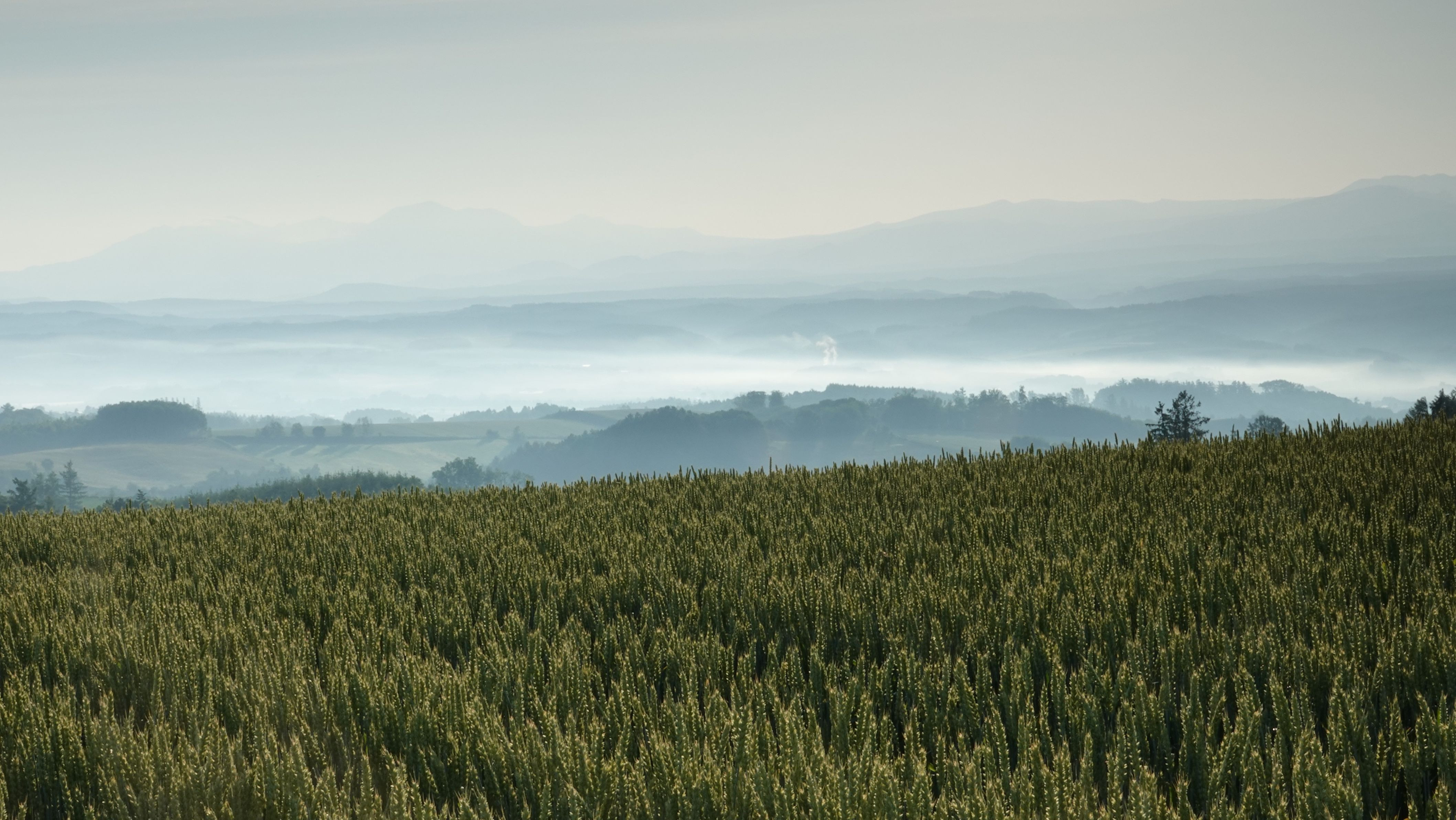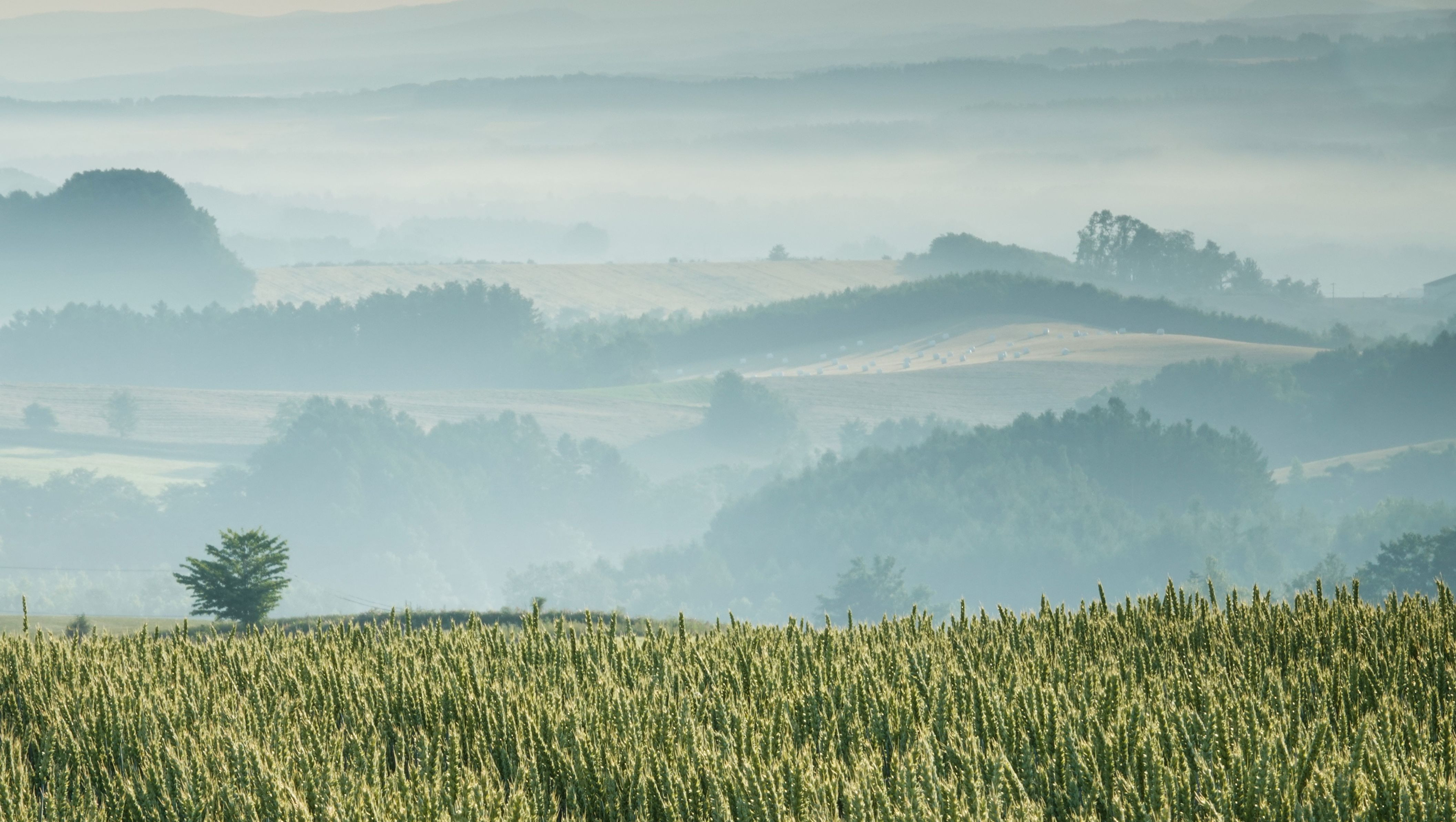 製品情報>My Sony>αcafe>朝霧の小麦畑丘陵(山岳一歩さん)