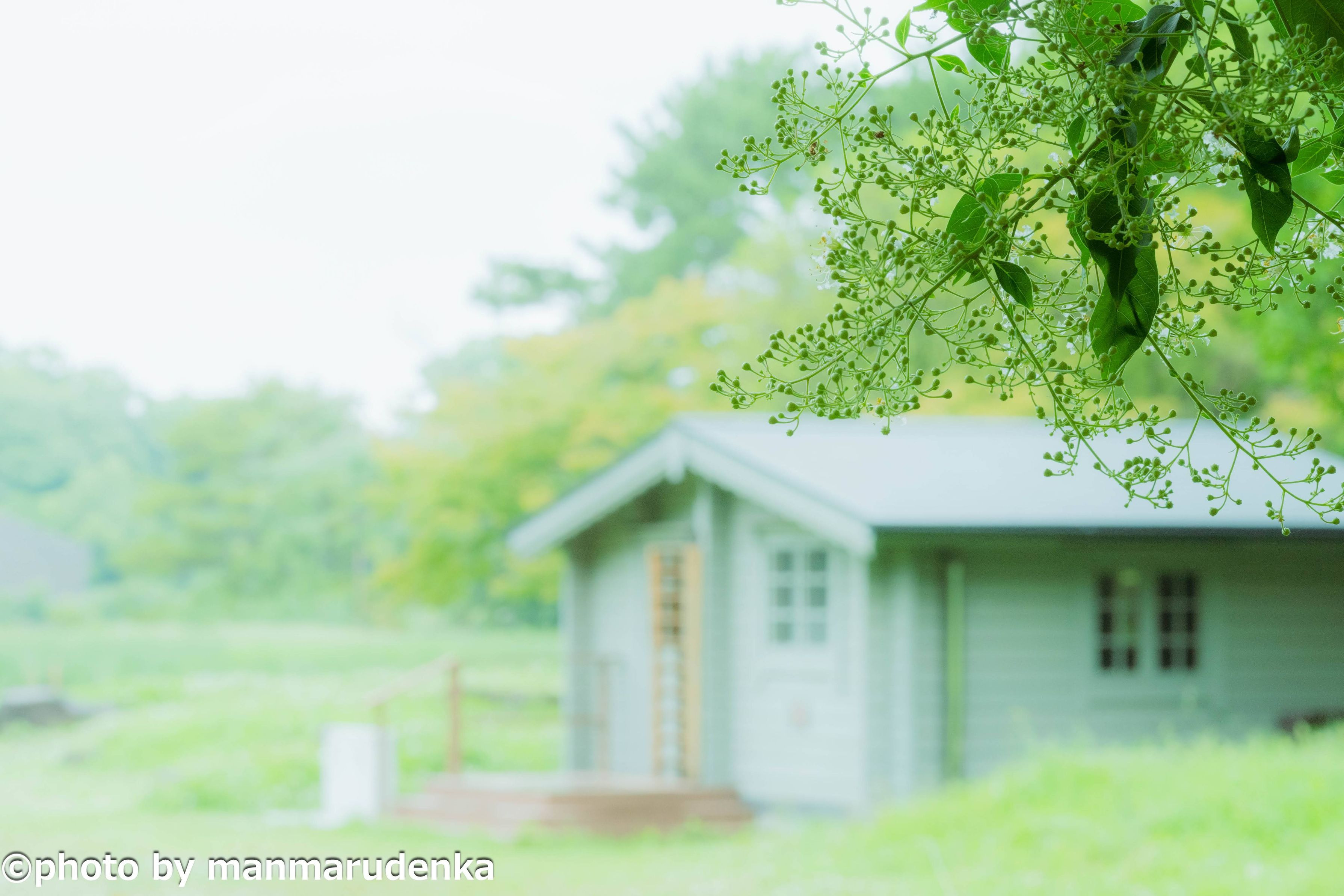 長居公園植物園にてマユミ(?)の向こうに佇む小屋をメルヘンチックに仕上げてみました。