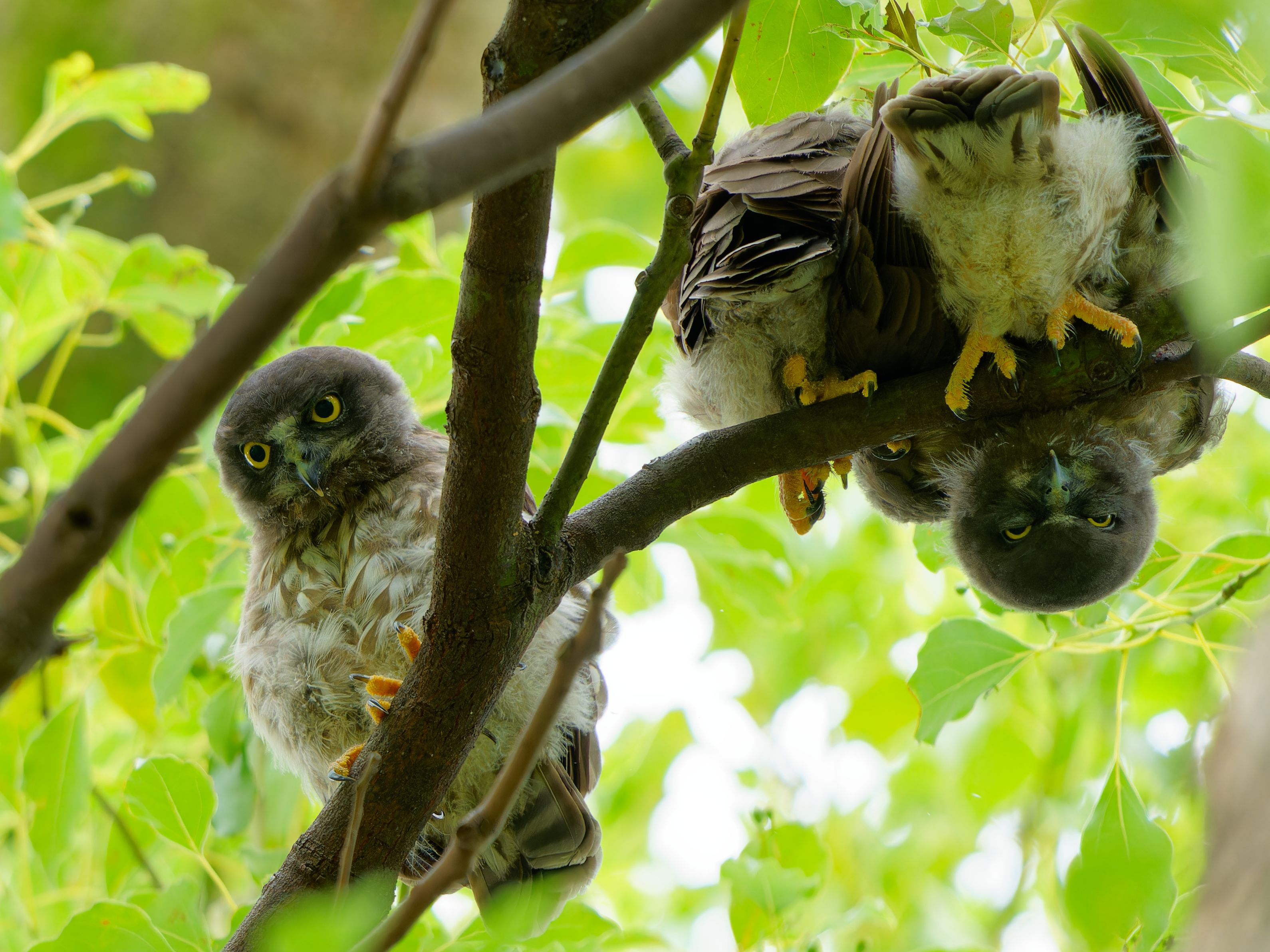 近所の神社のコミミズク3兄弟です。 元気に育ってほしいと思います。