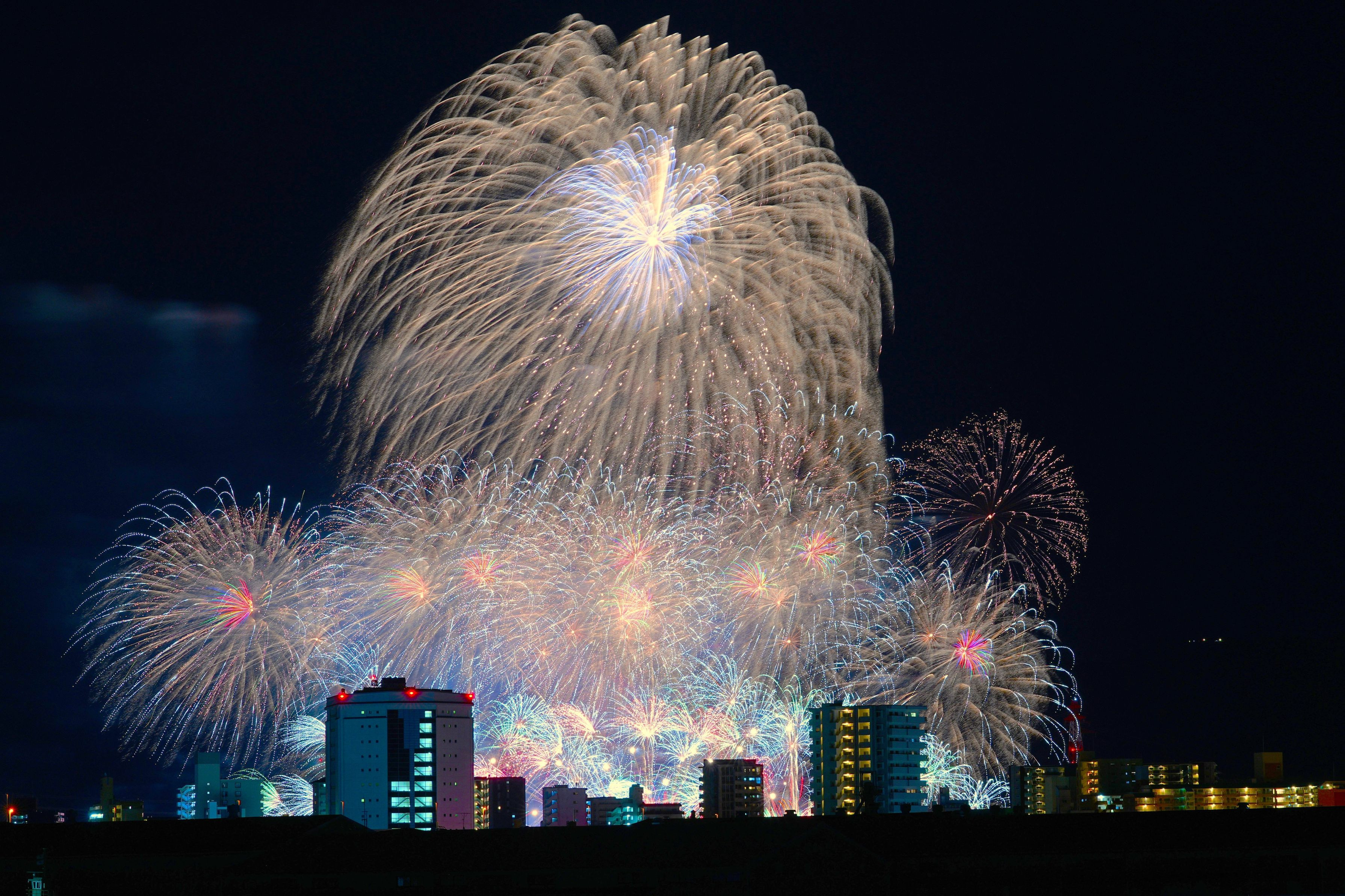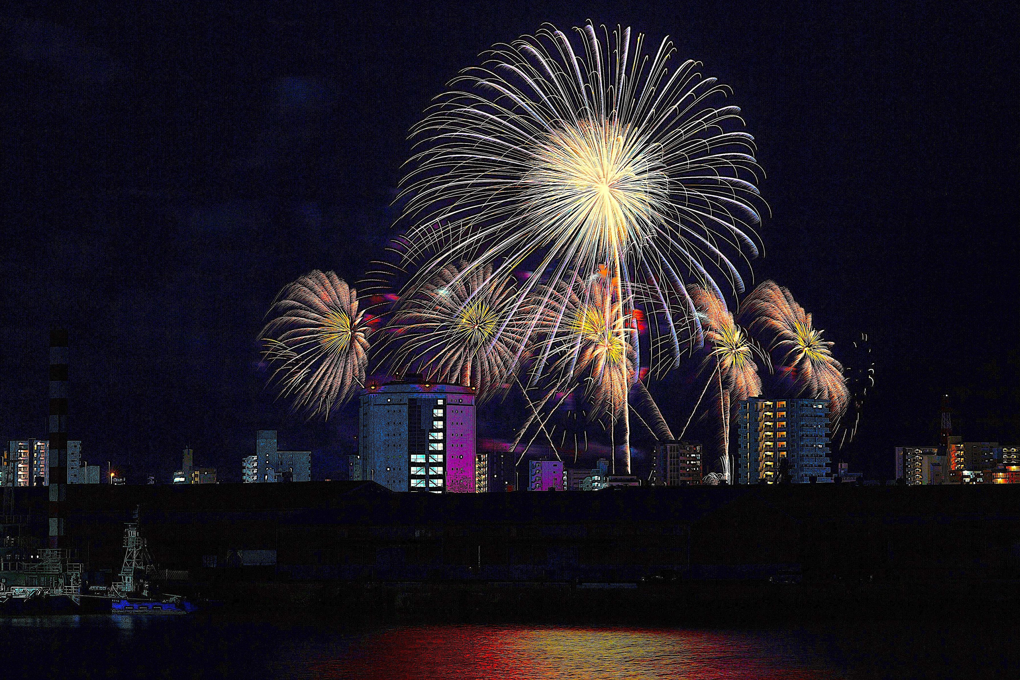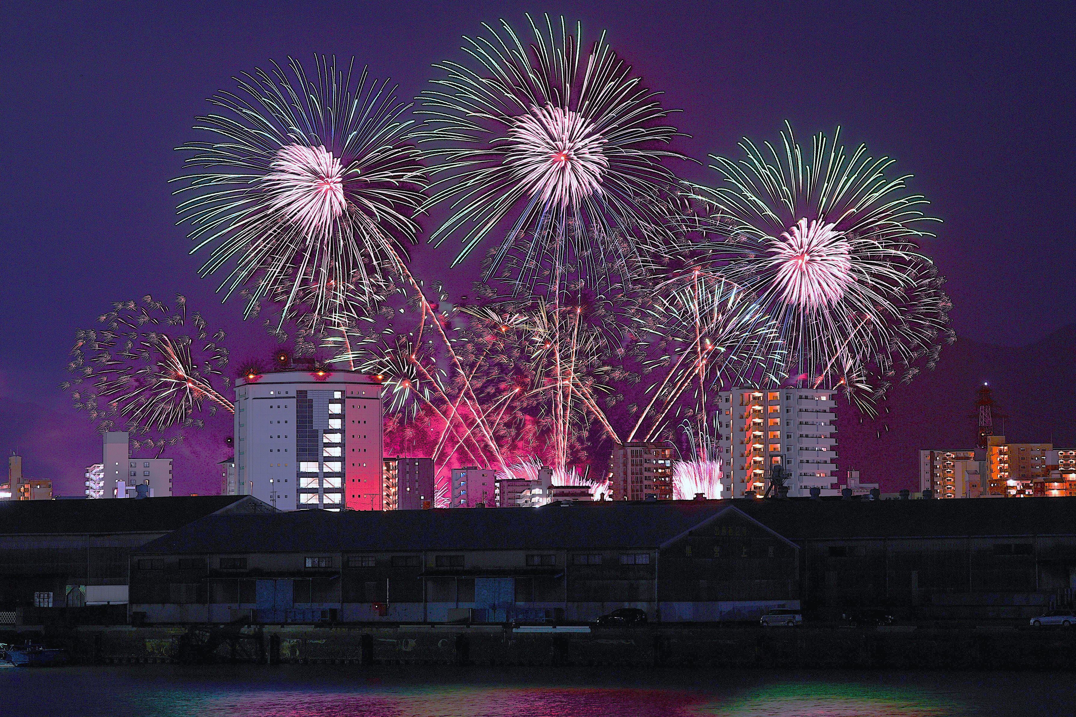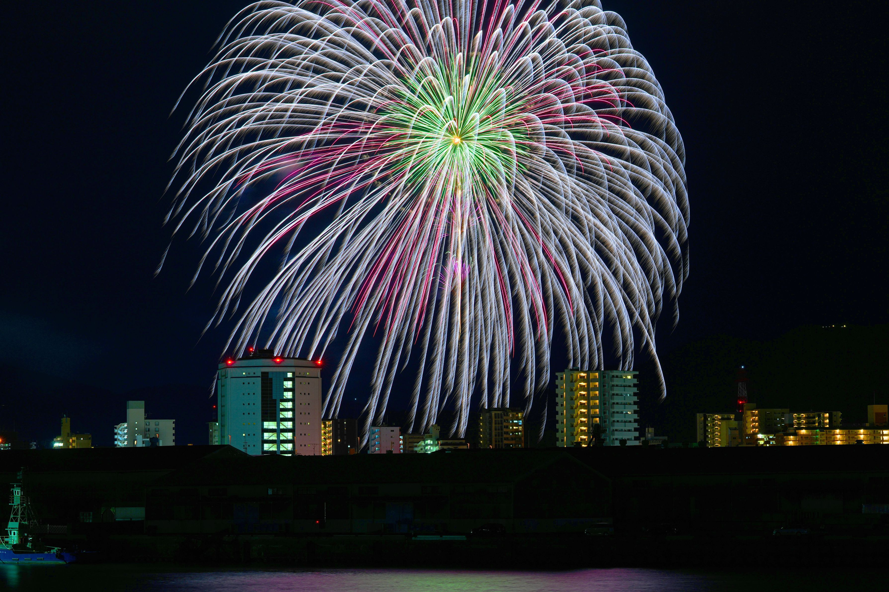 コロナで久しぶりに開催された夢みなと花火大会を 1年ぶりの為前の感覚忘れてタイミング合わず上手く撮れなかったです よさそうなものをみてください