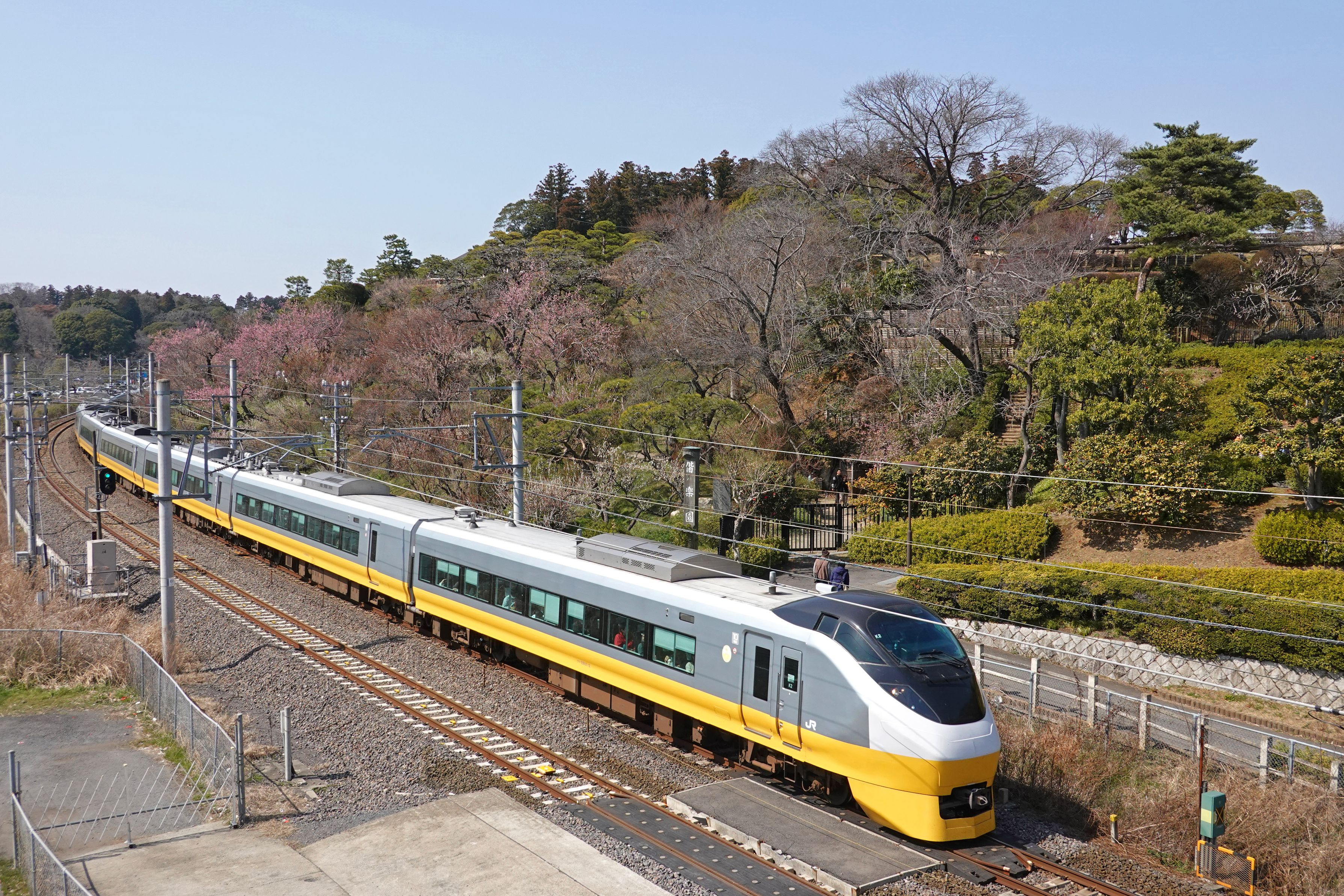 またまた過去の乗り鉄シリーズ 自宅最寄駅から東海道線、常磐線を経由して水戸まで1本で行ける臨時特急が運転されたので行ってみました。 東海道線では見かけることのない E657系 でした。 起点駅の東京駅、上野駅(路線として日暮里です)も通過してしまう潔さが良かった。 梅はほぼ終わってましたが、偕楽園で鮮やかな E657系 「フレッシュひたち」リバイバルカラー(黄色)を撮影。