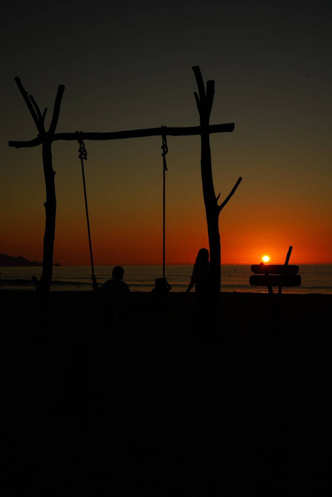 京丹後市 夕日が浦の日没 ビーチブランコゆらり