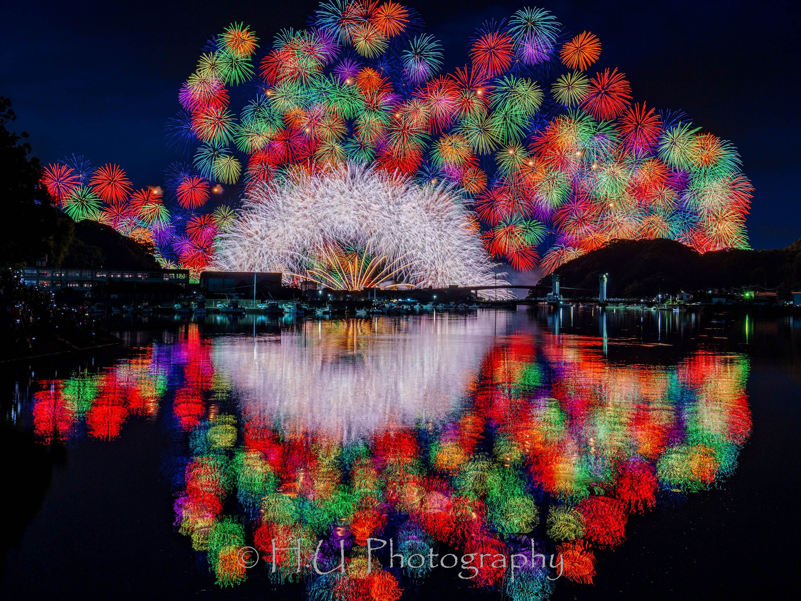 きほく燈籠祭2024のクライマックス、彩雲孔雀千輪の写真です。 この数十秒のために、2日がかりで三重まで行ってきました。 車で行っても、鉄道を使ってもアクセスが悪く、撮影場所も限られているのでちゃんと計画をしていかないとひどい目にあいますね。またいつか撮りに行きたいです。