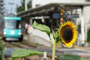 世田谷線沿いにヒマワリとムクゲを見つけました。