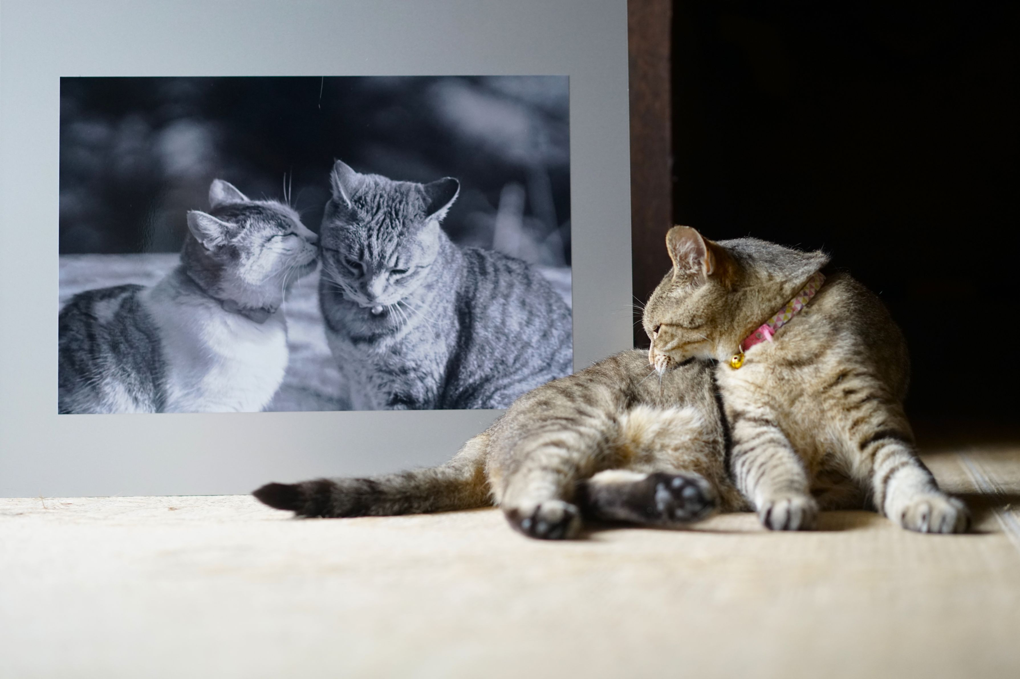 本日写真パネルが届きました! とても立派で素晴らしいので感激しています。 8月3日に12歳になったばかりの マロン♀さんと記念写真を(=^・^=) 猫さんはあまり興味がないみたいww モデルさんのおかげです ね♡ ありがとうございました~☆彡