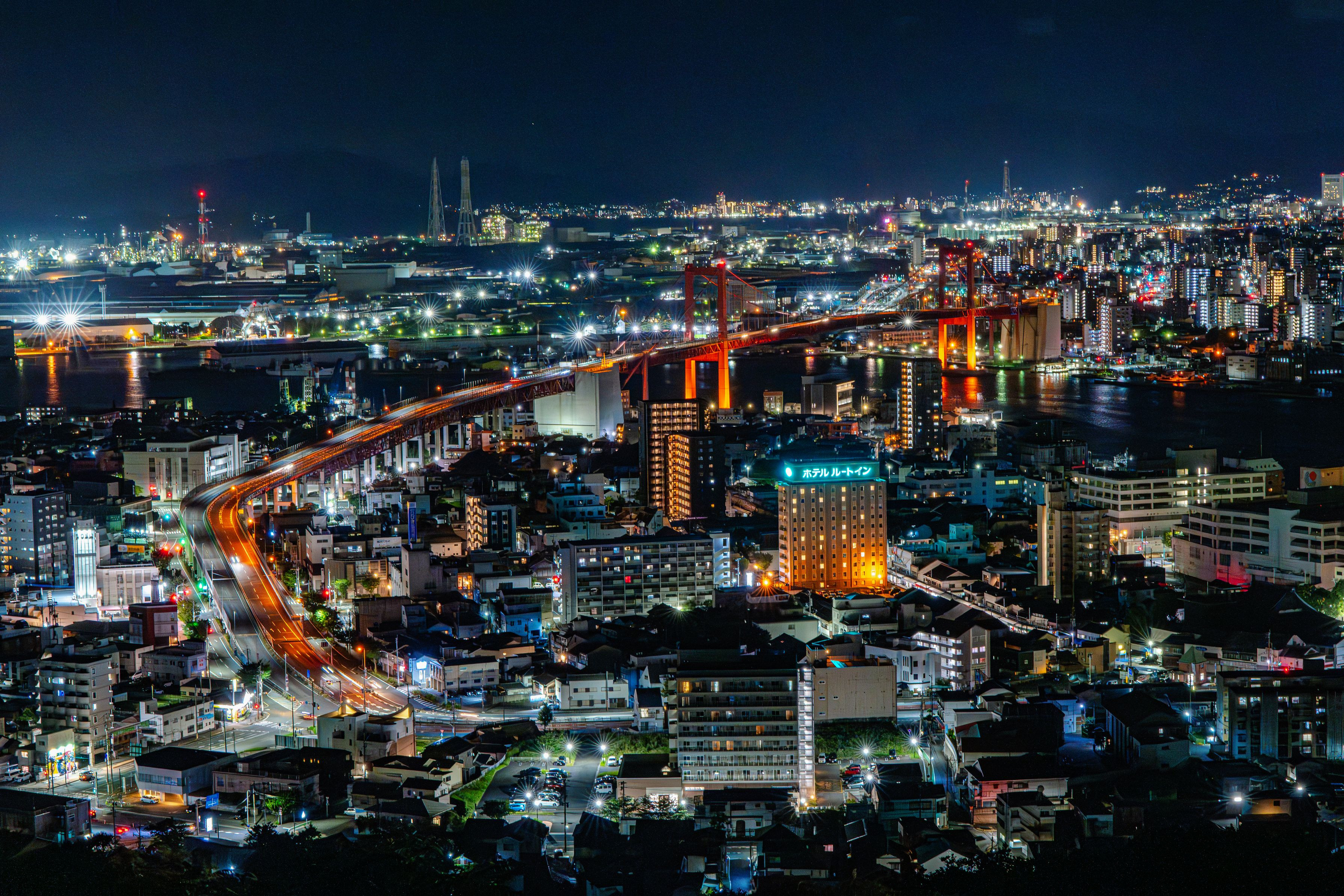 本当はライトアップされた若戸大橋が撮りたかったのですが、21:55に現地到着し、三脚等準備完了した瞬間に22時を迎え無事消灯。 しかも三脚はクイックシューを忘れており結局手持ち撮影… 自分の計画性のなさが詰まった1枚です